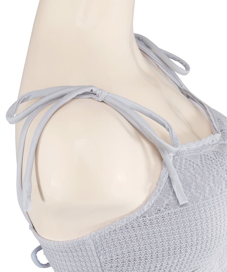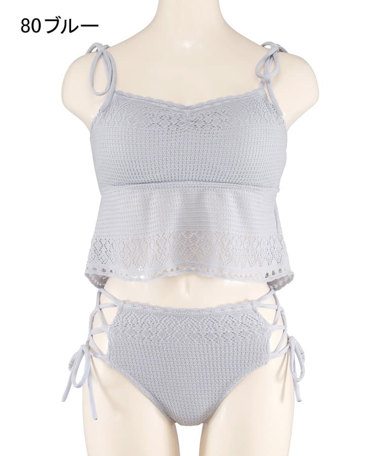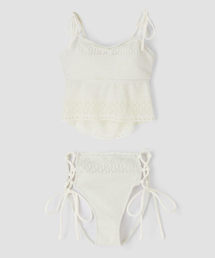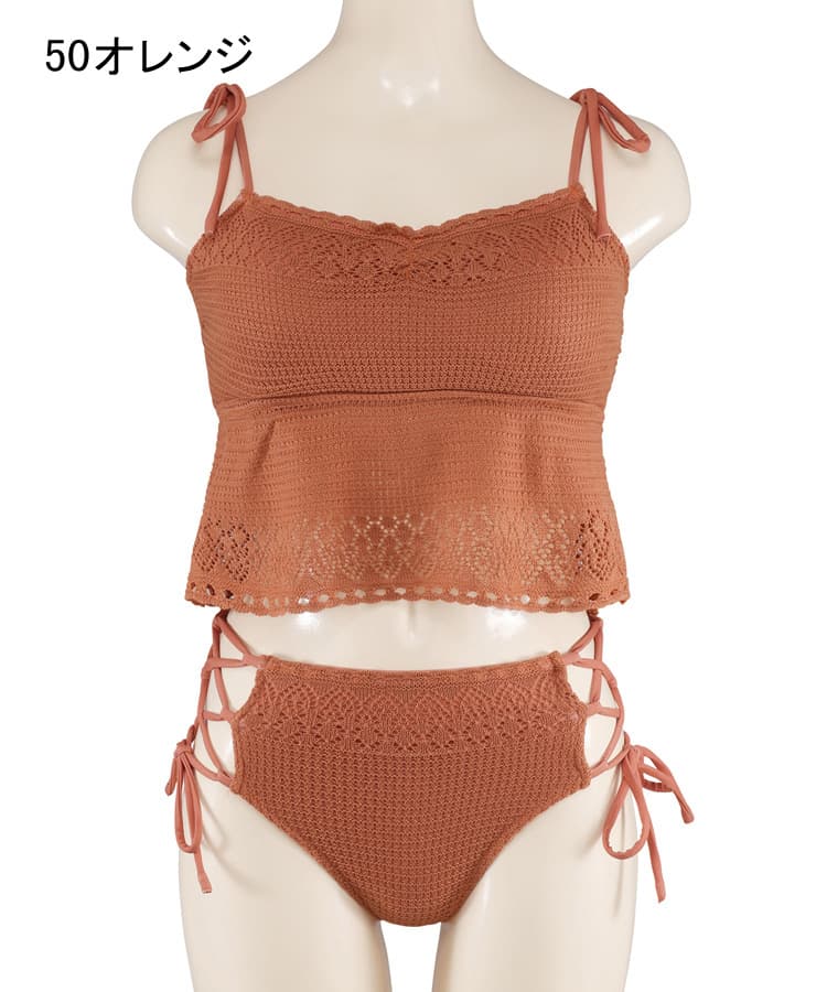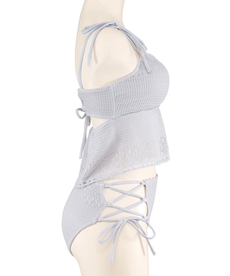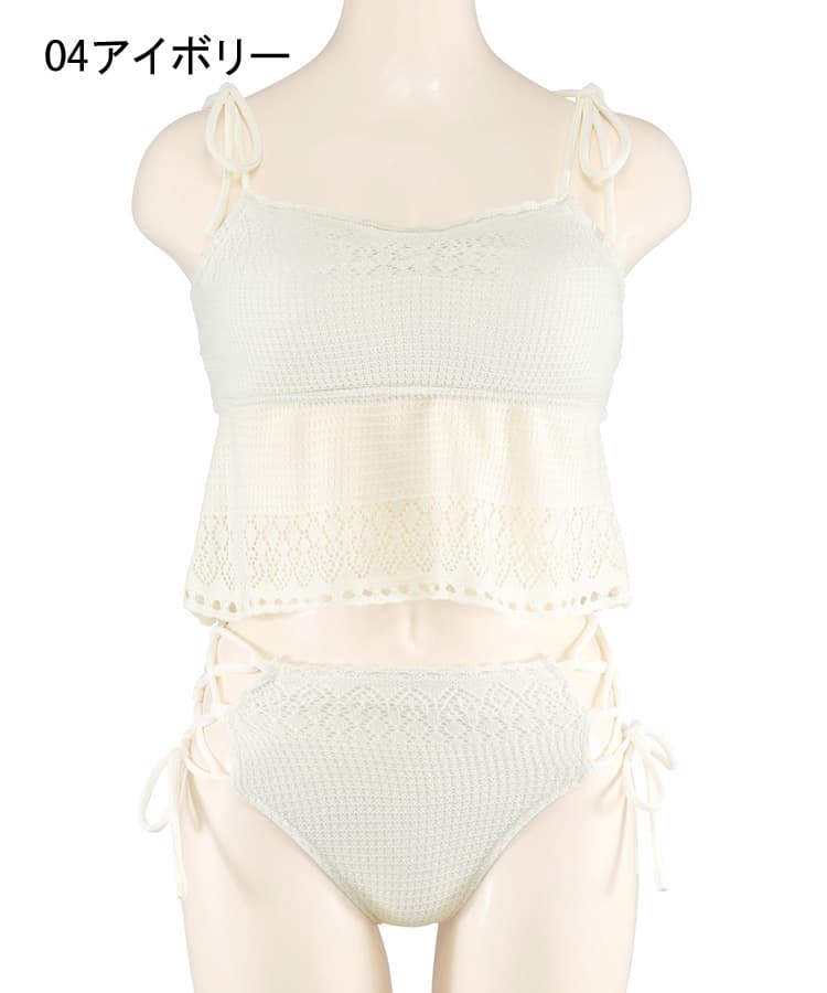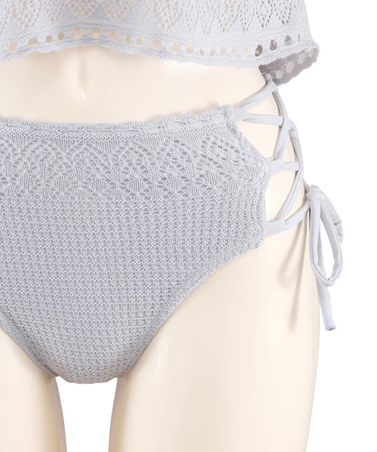 胸元とアンダーフリル部分の透かしスカラップが可愛いALLニットビキニ。