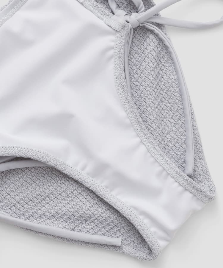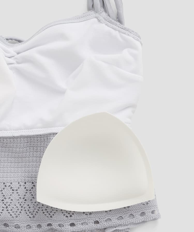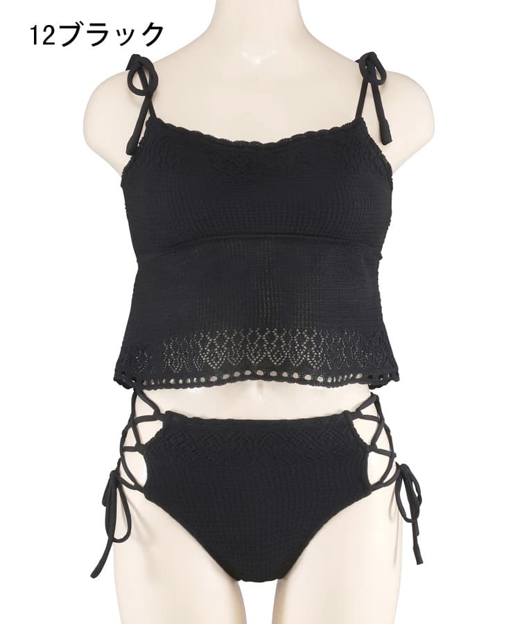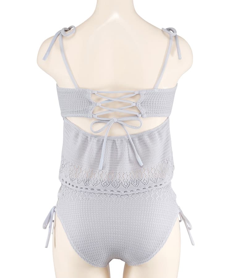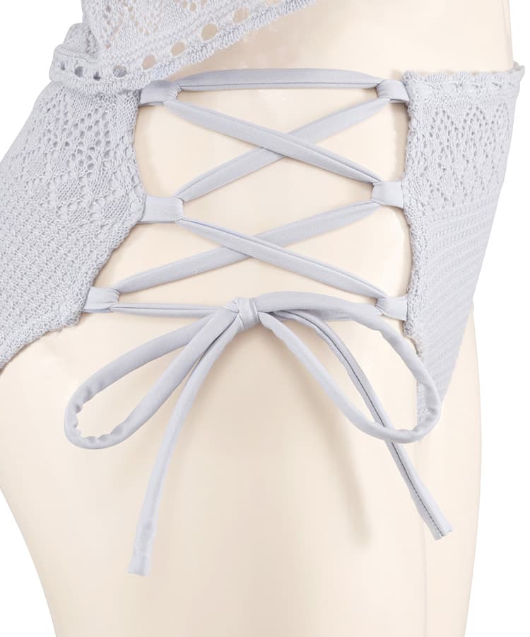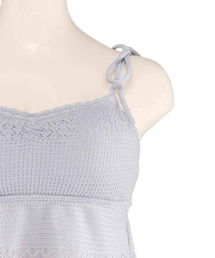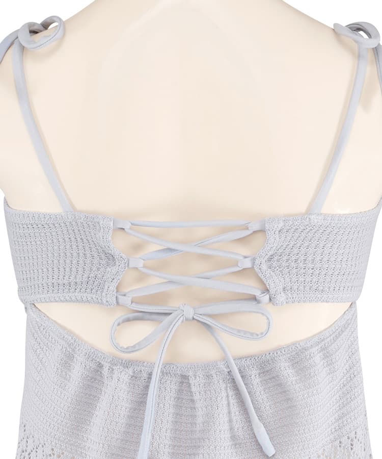 胸元とアンダーフリル部分の透かしスカラップが可愛いALLニットビキニ。