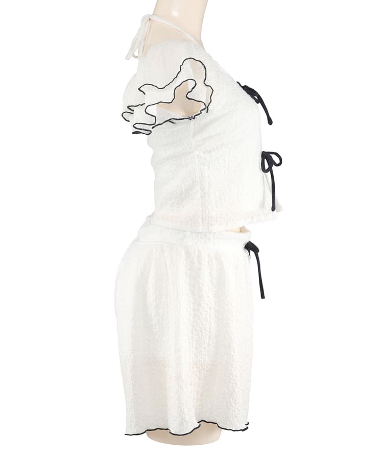 まるでお洋服のようなフリルトップスビキニ 2点セット。