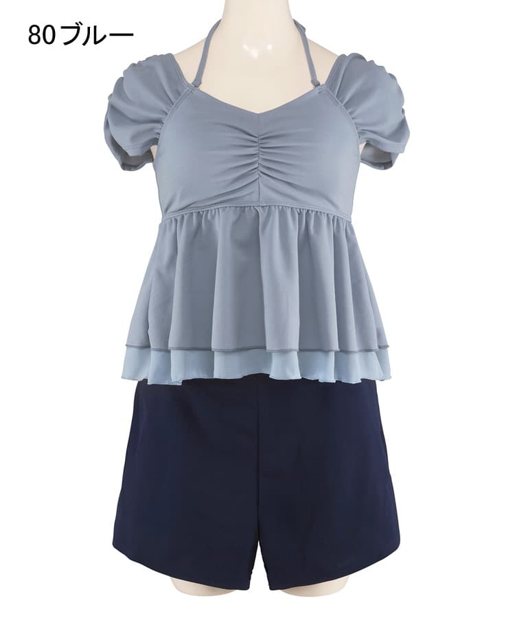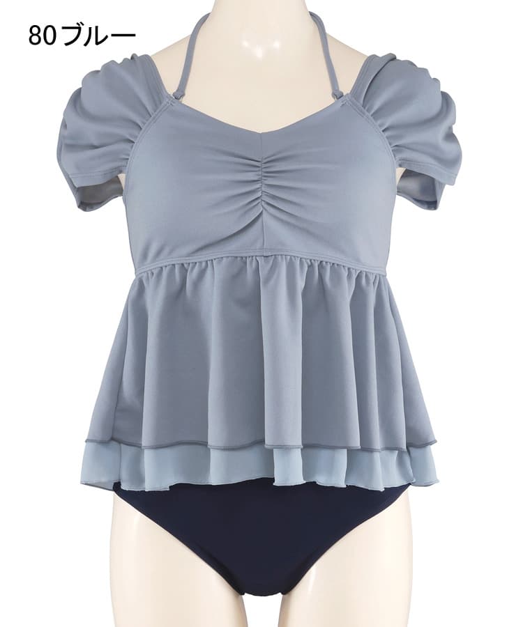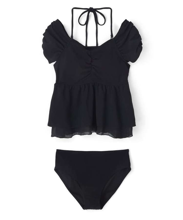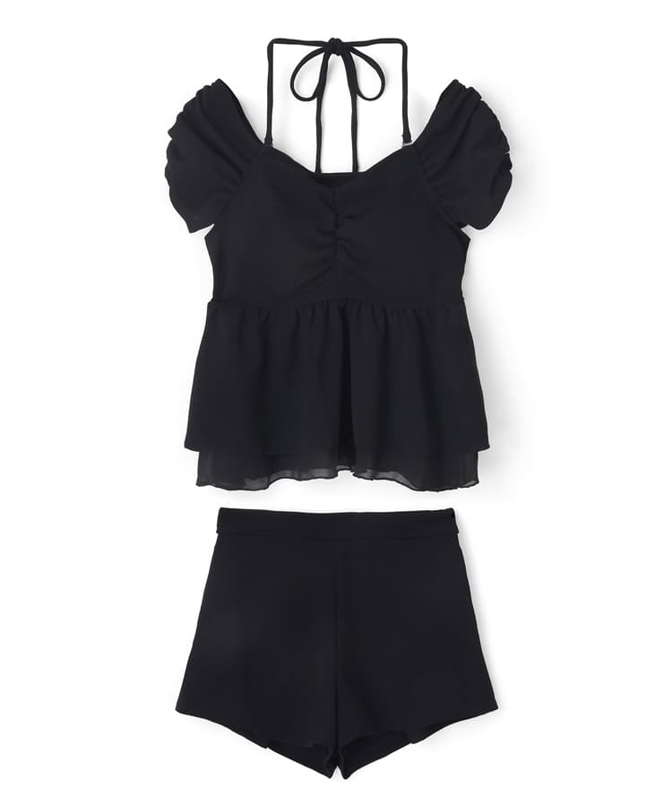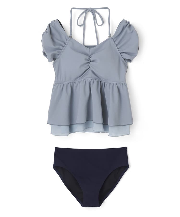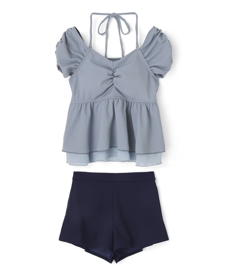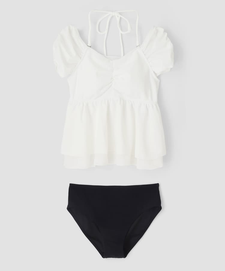 まるでお洋服のようなギャザーショルダービスチェビキニパンツ3点セット。