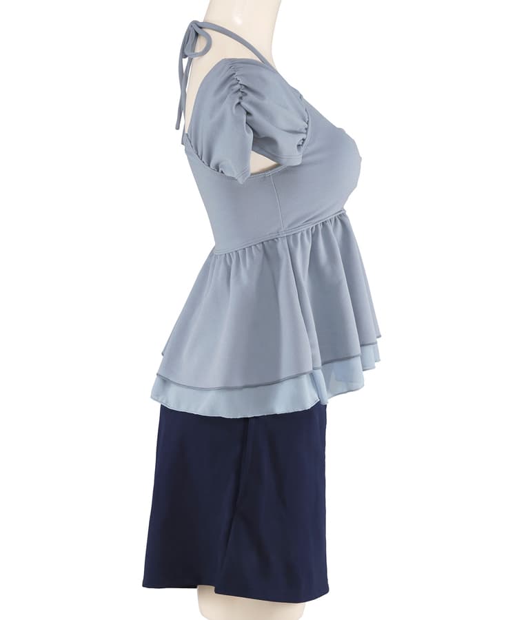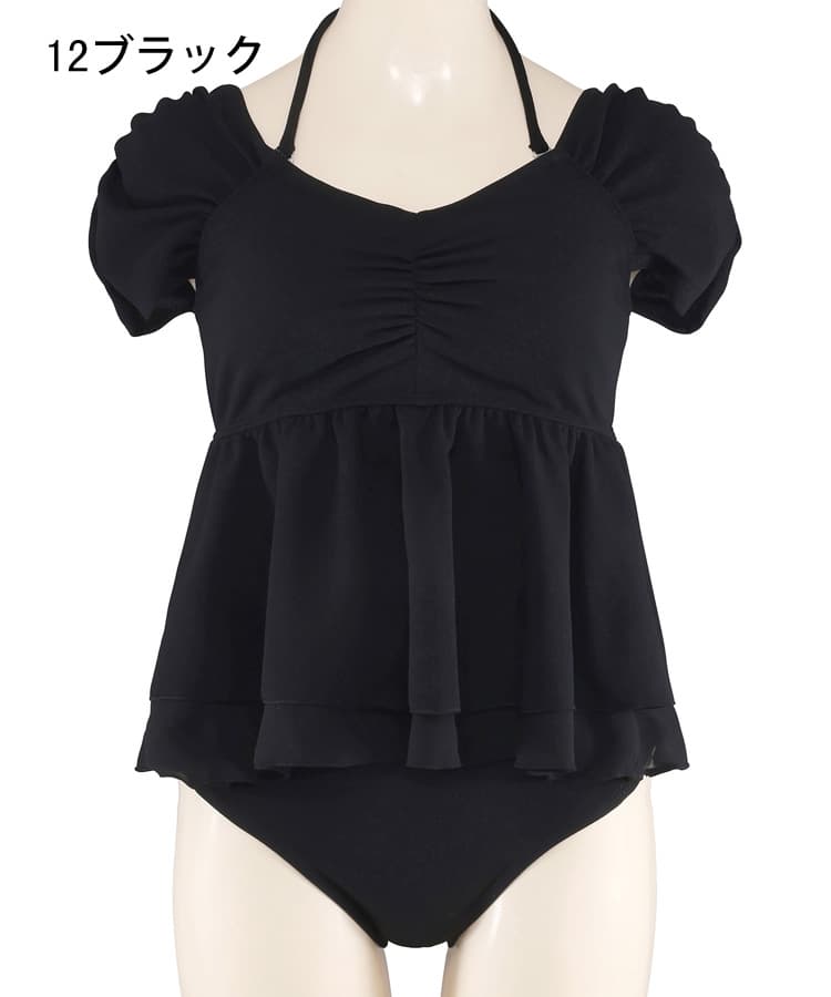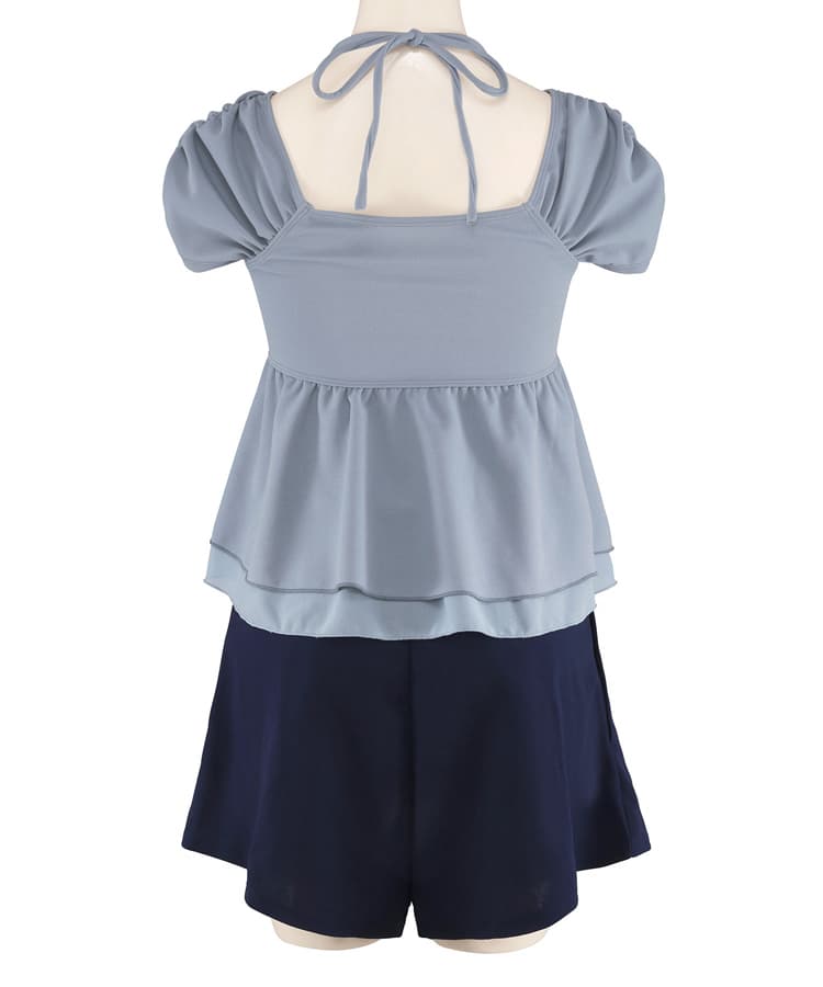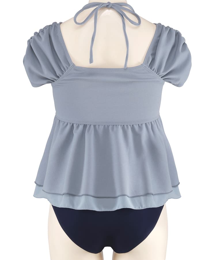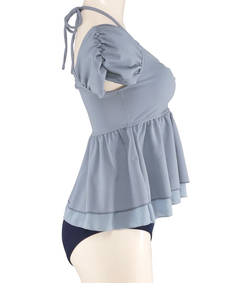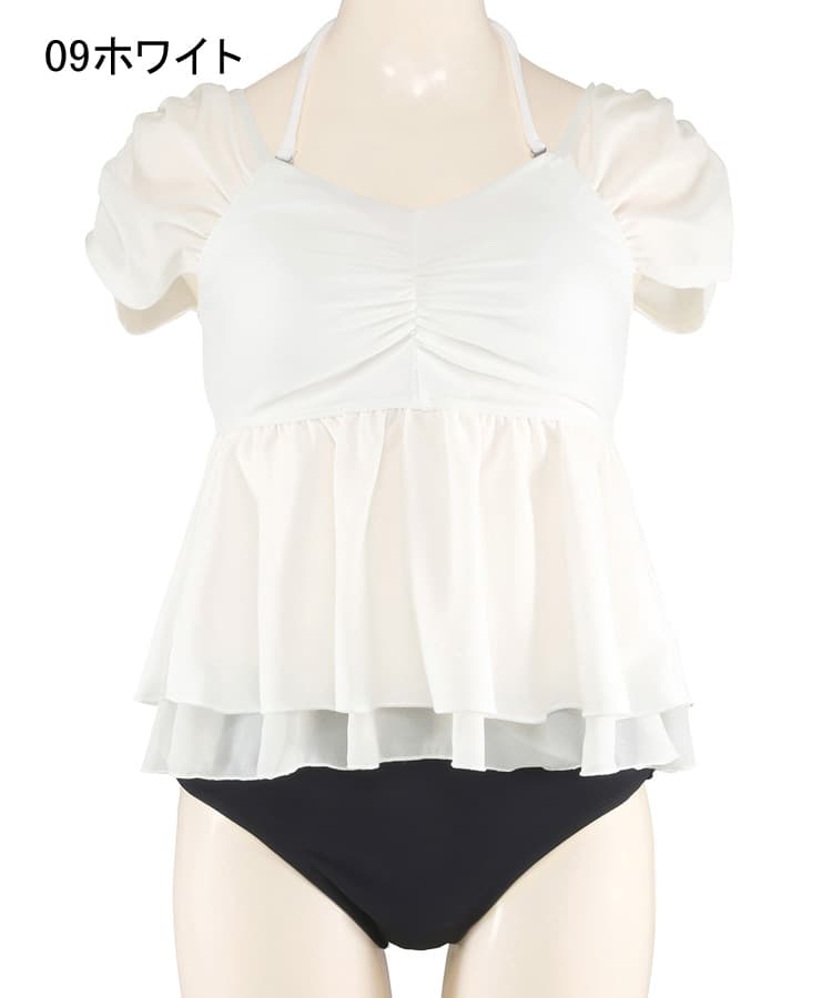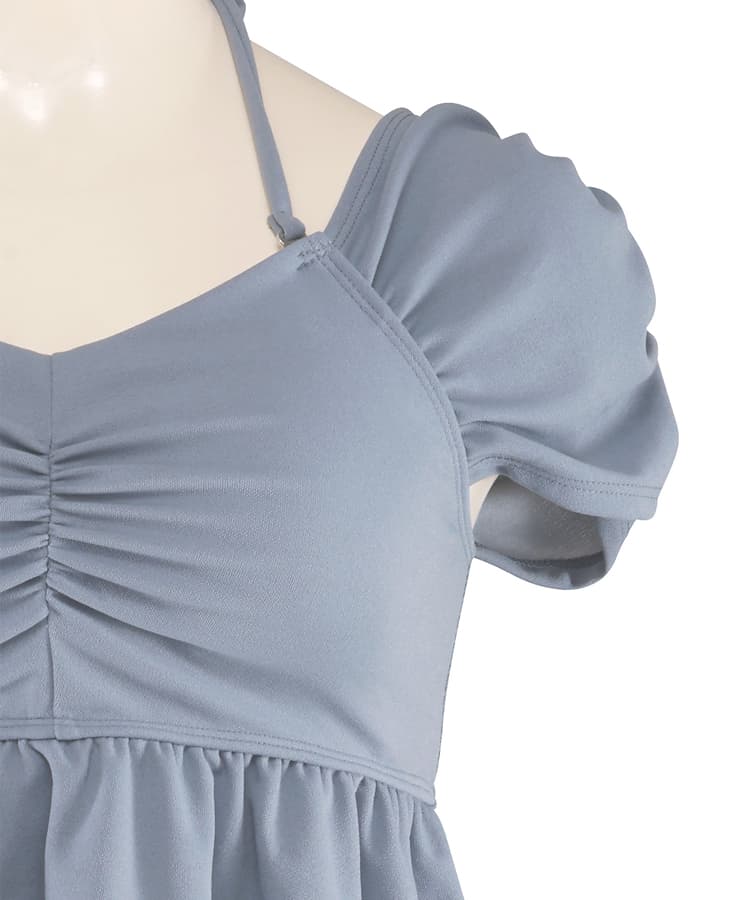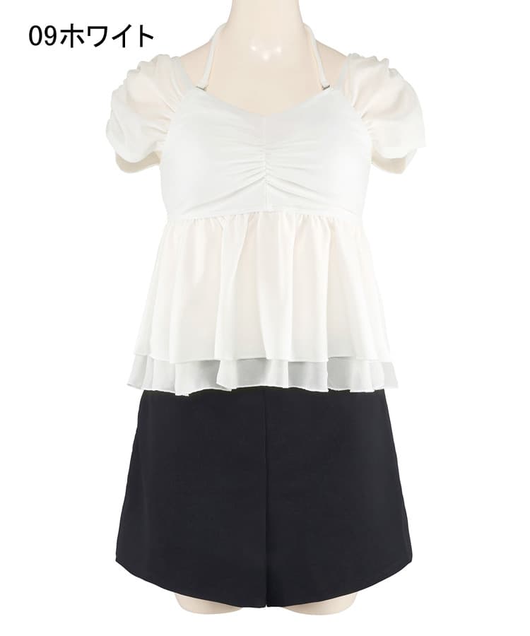 まるでお洋服のようなギャザーショルダービスチェビキニパンツ3点セット。