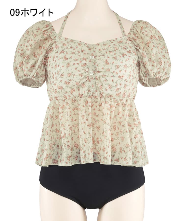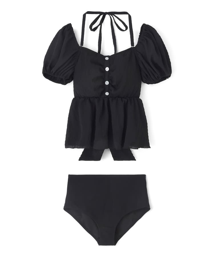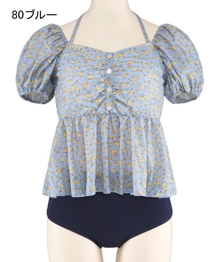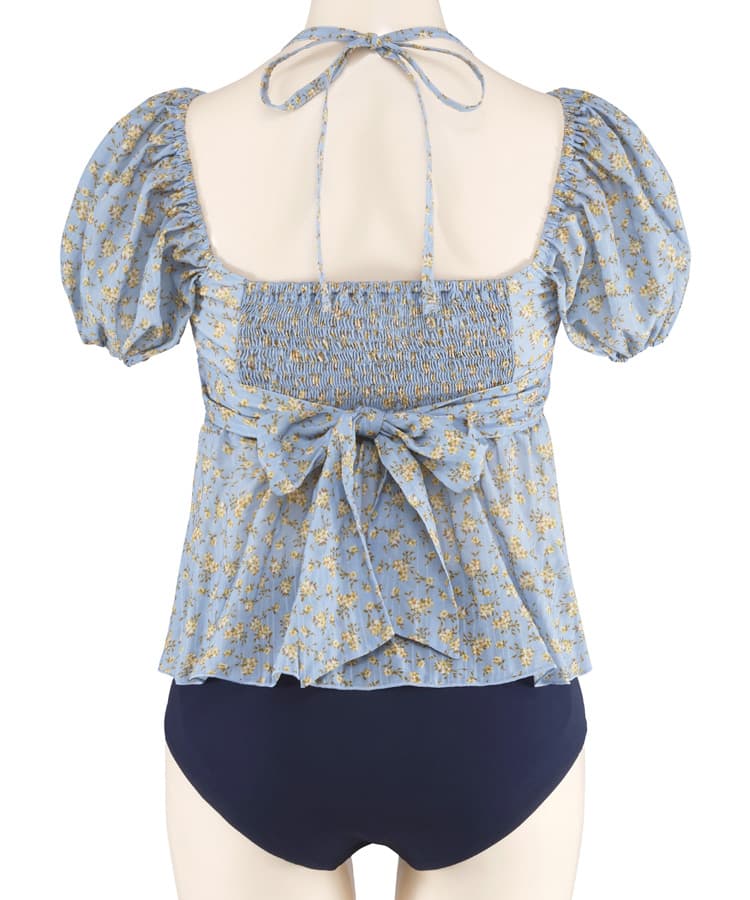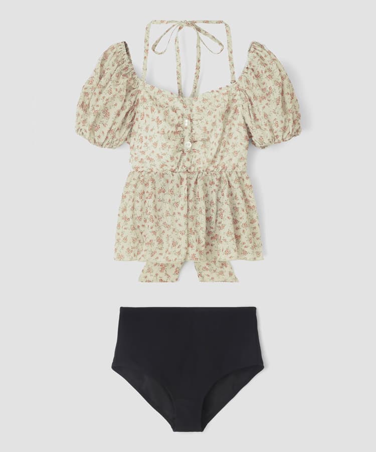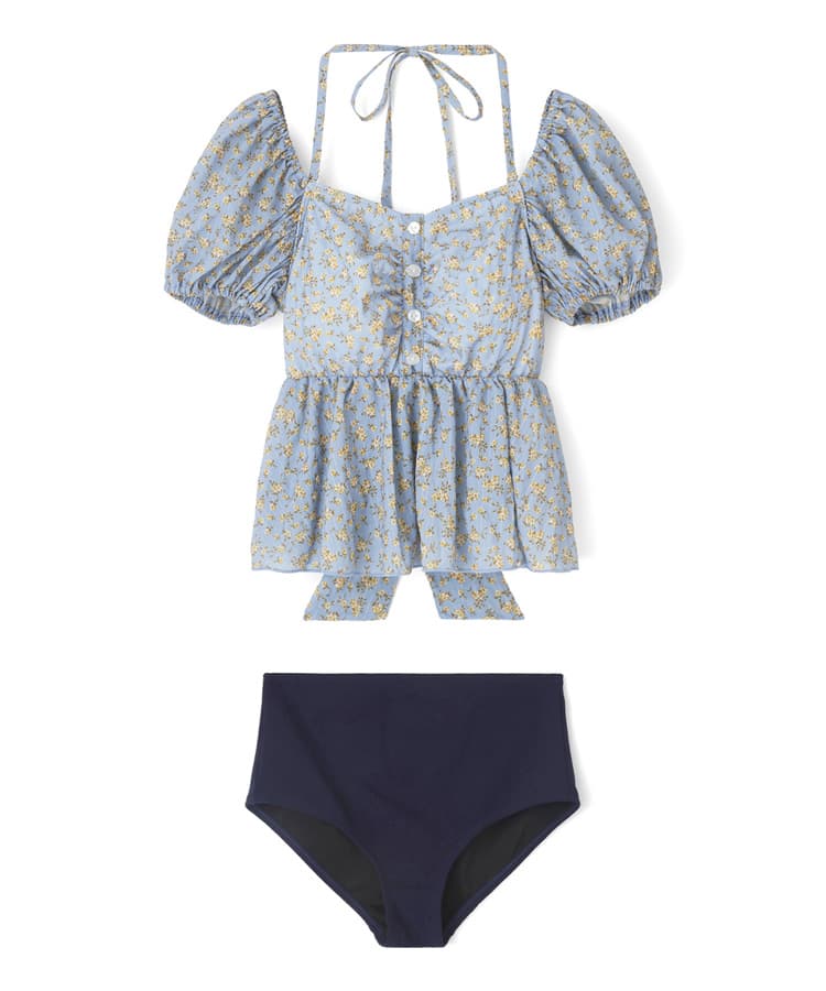 まるでお洋服のようなフラワーパフスリーブビスチェビキニスカート3点セット。