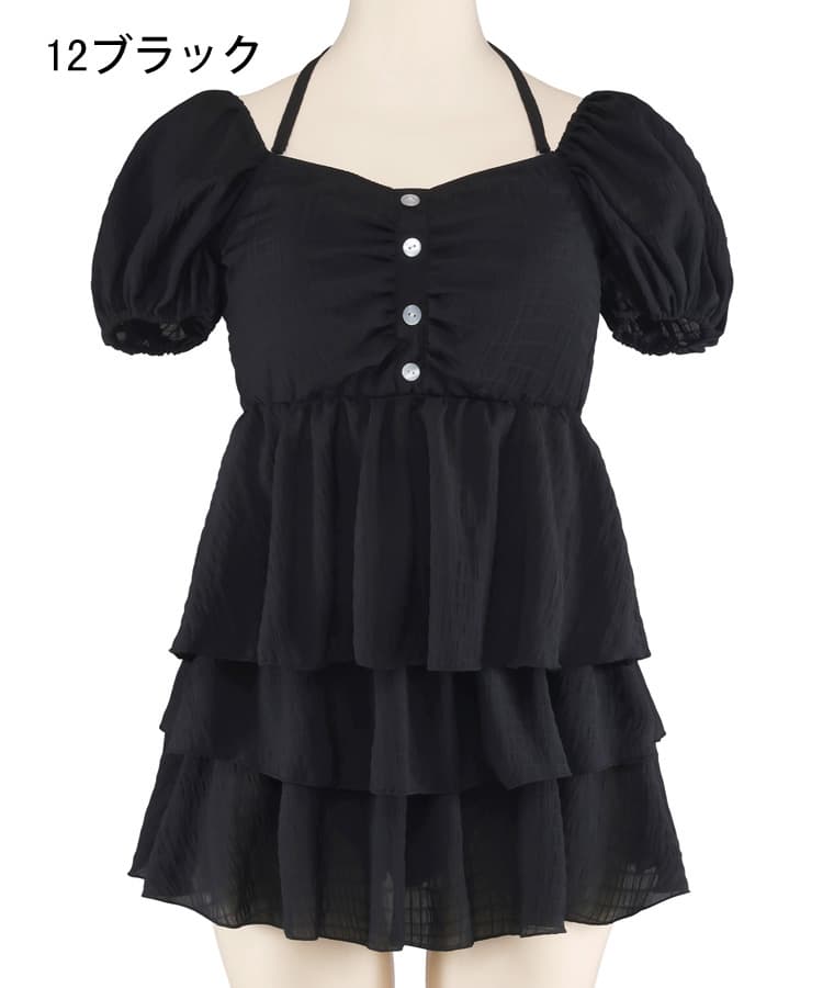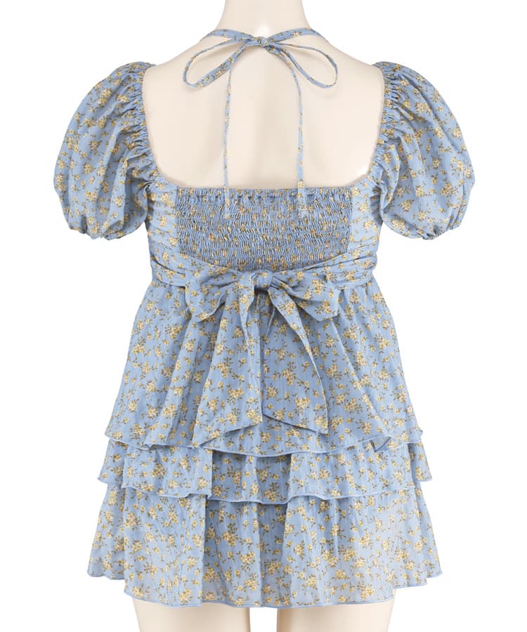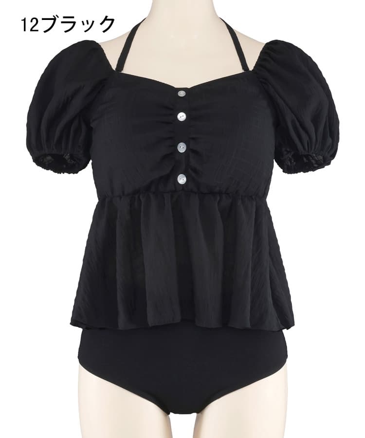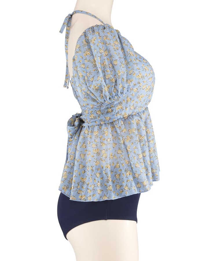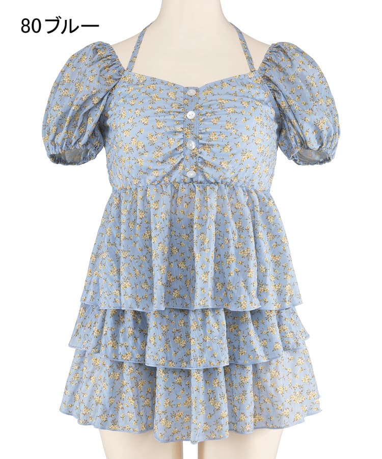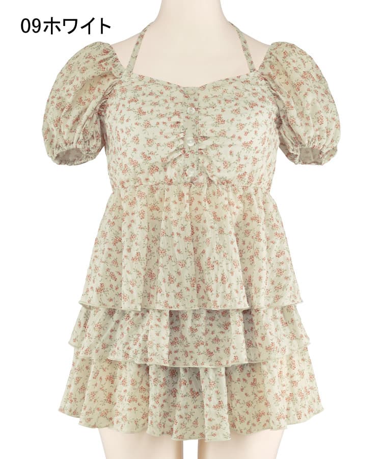 まるでお洋服のようなフラワーパフスリーブビスチェビキニスカート3点セット。
