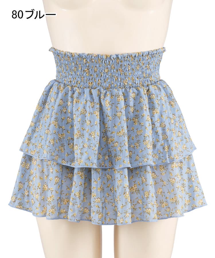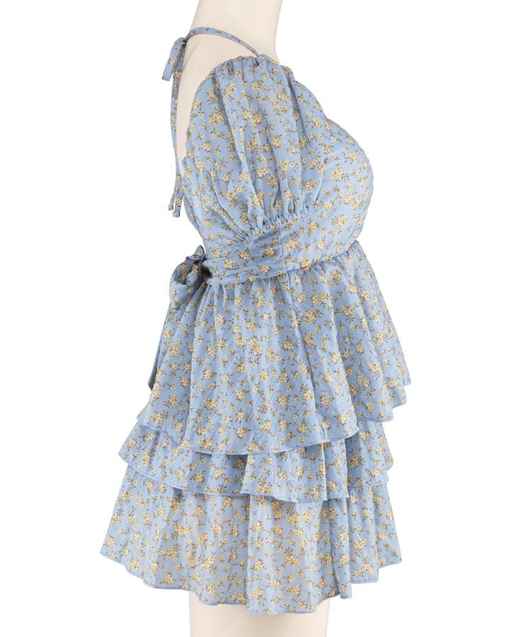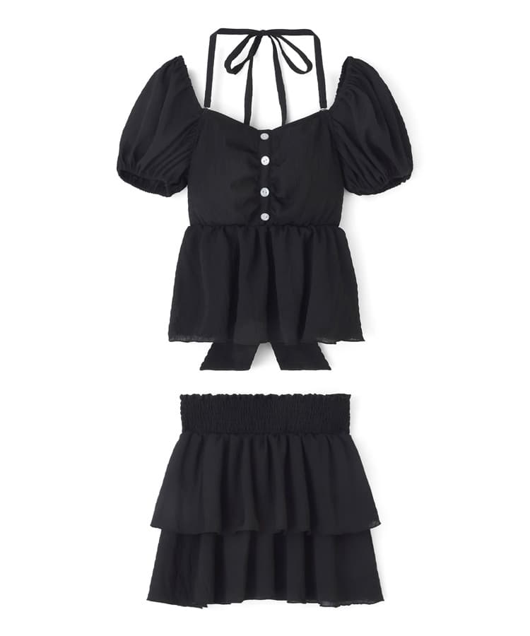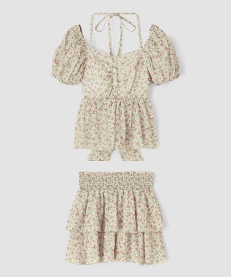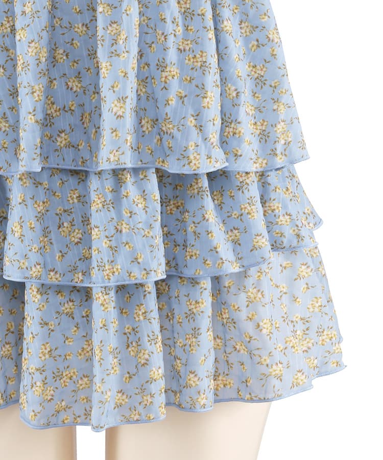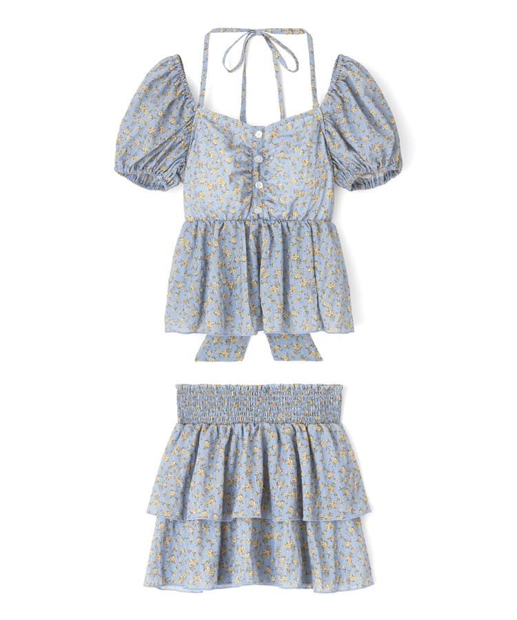 フラワーパフスリーブビスチェスカート3点セット