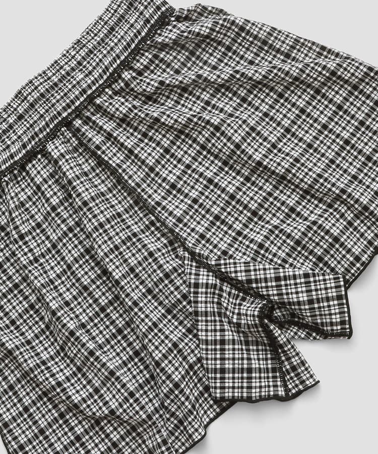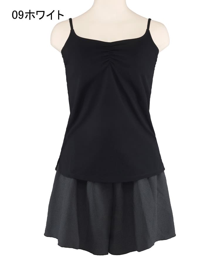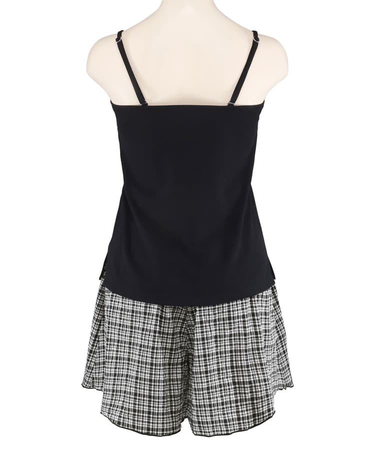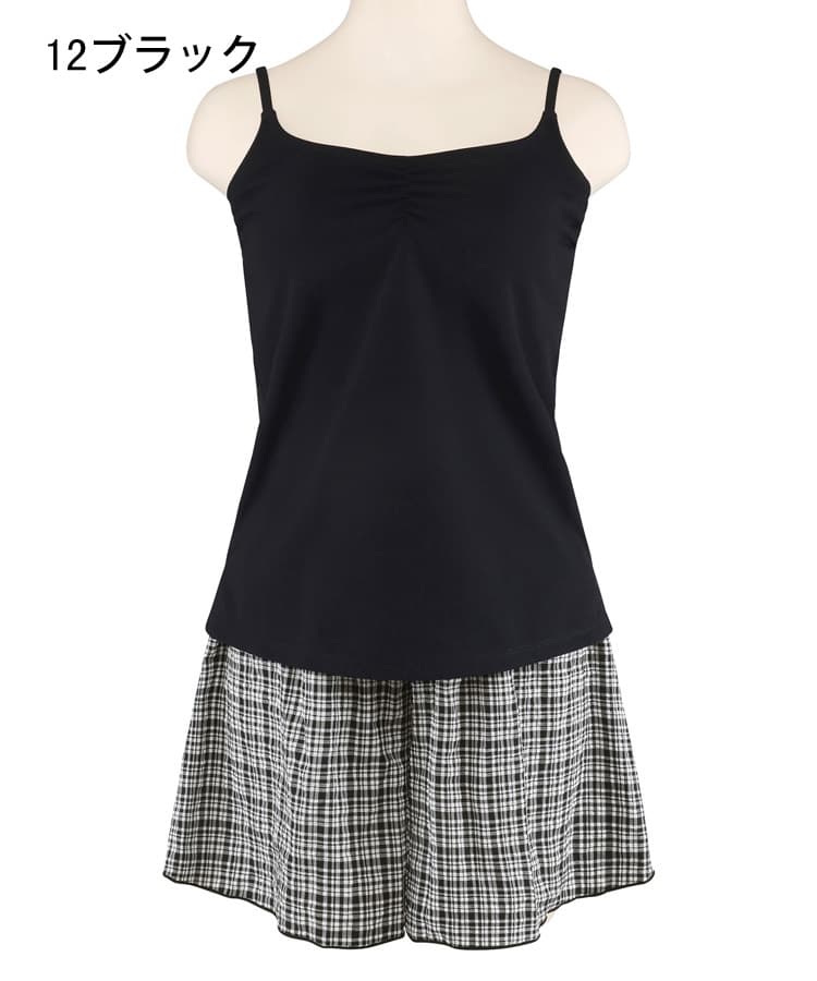 サッカーチェックのパンツ付きタンキニ4点セット。