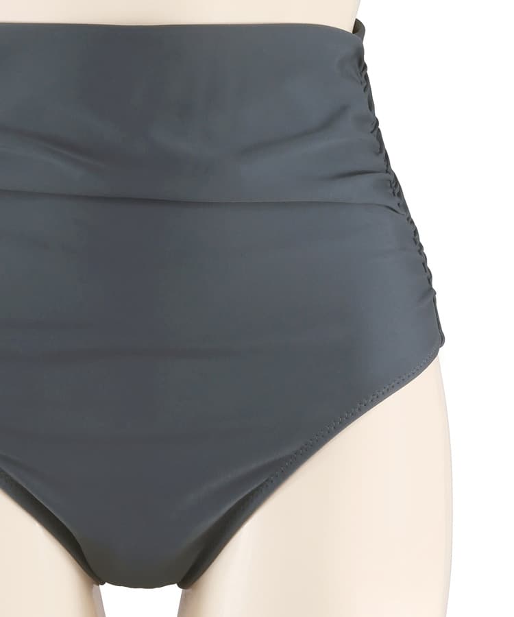 ハイウエストのショーツはギャザーデザインで気になるお腹部分をカバーしてくれます。