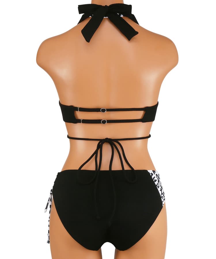 表面変化素材×レオパード柄のレイヤードデザインがクールなナチュラルアップビキニ。