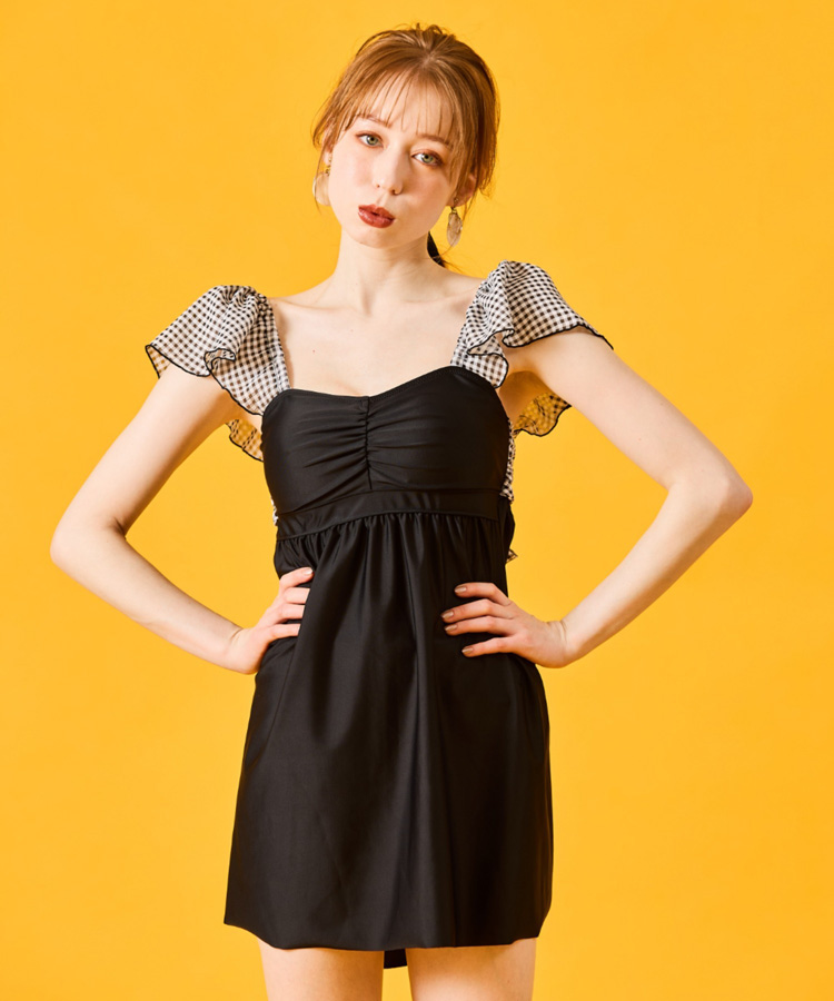 お洋服感覚で着こなせるAラインワンピース水着です。