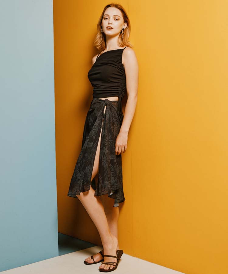 落ち着いたクールなリーフプリントがポイントの単品パレオです。
