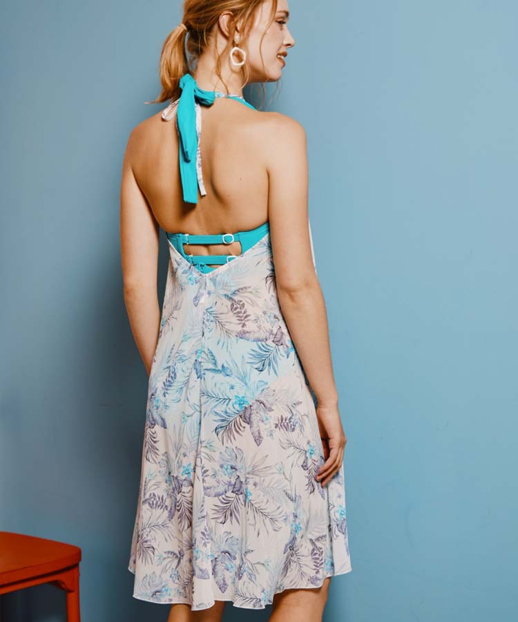 腰に巻いたパレオスタイルや、体型カバーできるワンピース風スタイルなど、何通りもの着方を楽しめます。