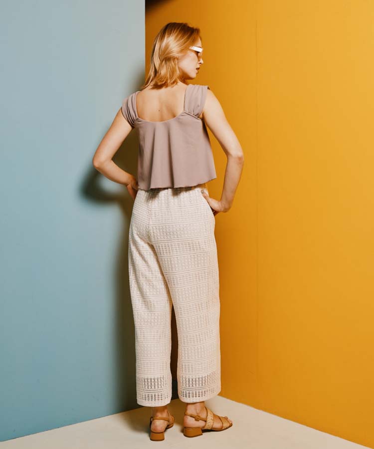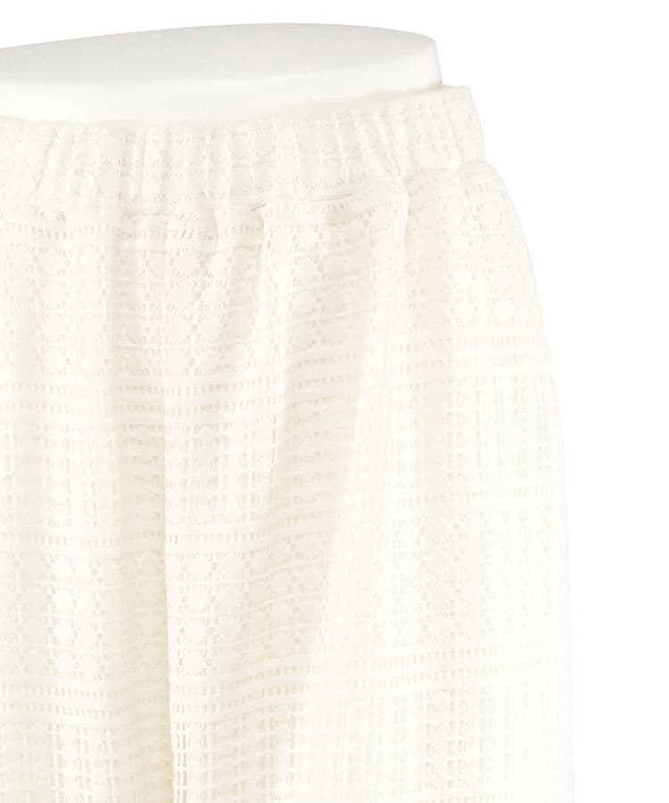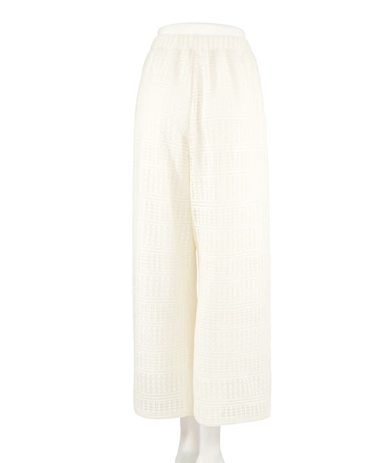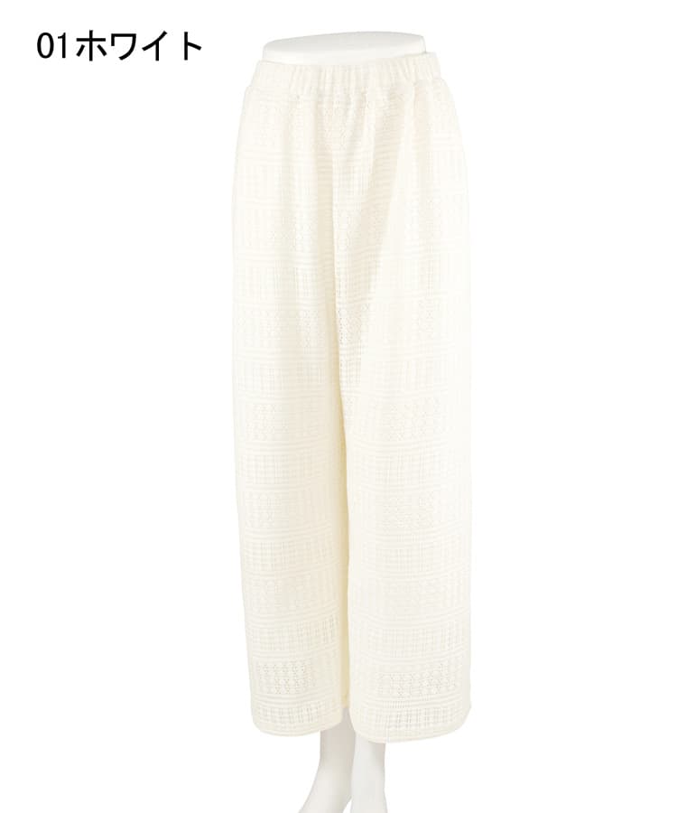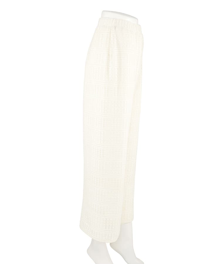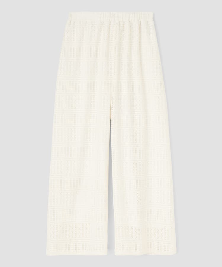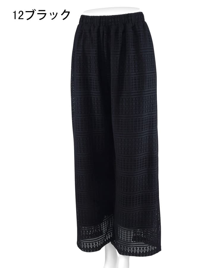ラッセルレースのロングパンツです。ストレッチ性があり、しわになりにくい素材を使用。