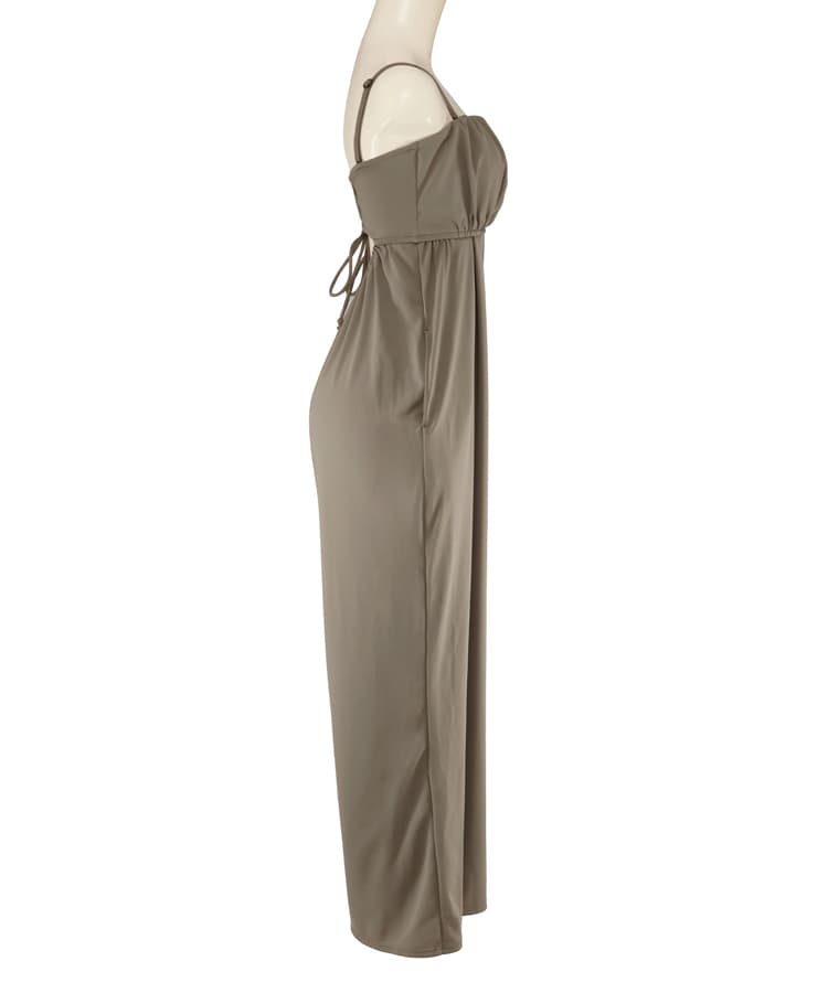 大人の肌見せスタイルが楽しめるコンビネゾンはさらっとしたマットな素材を使用。
