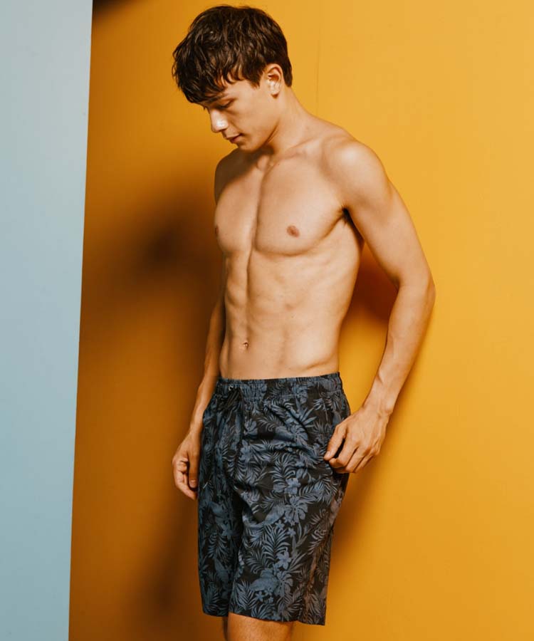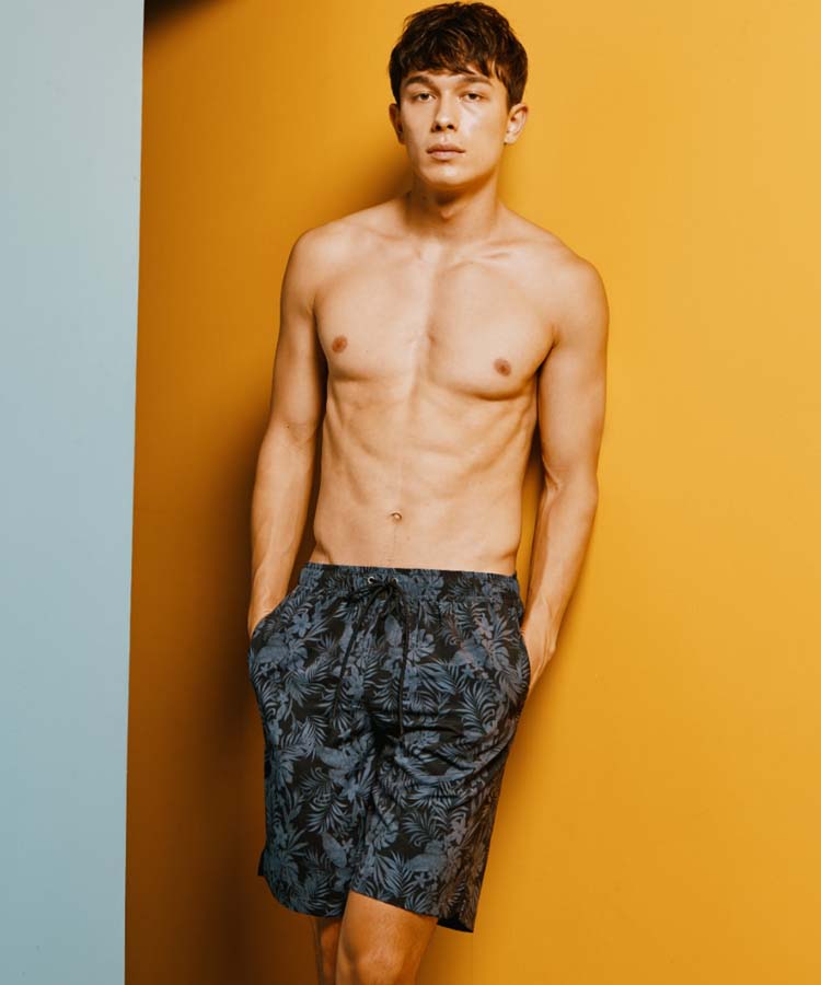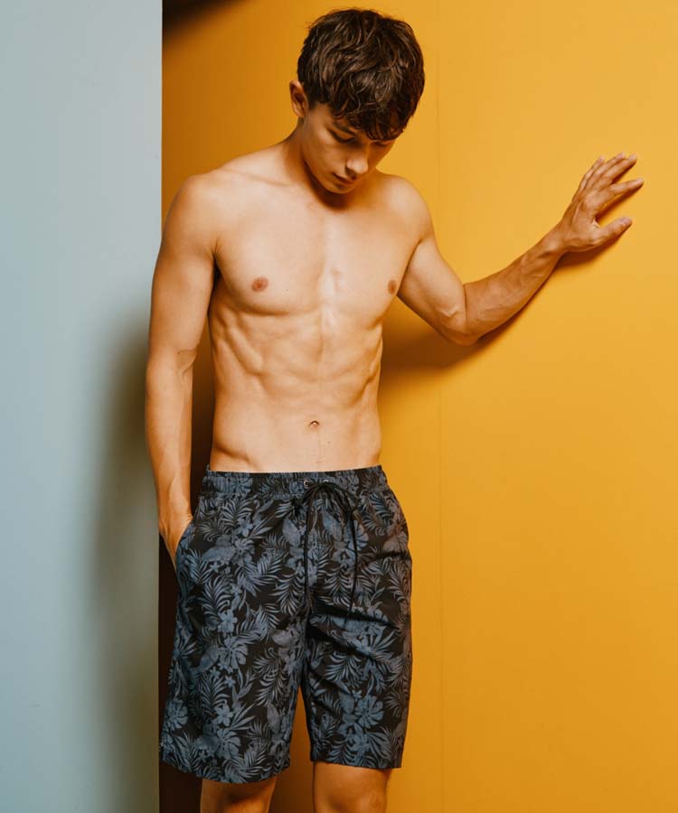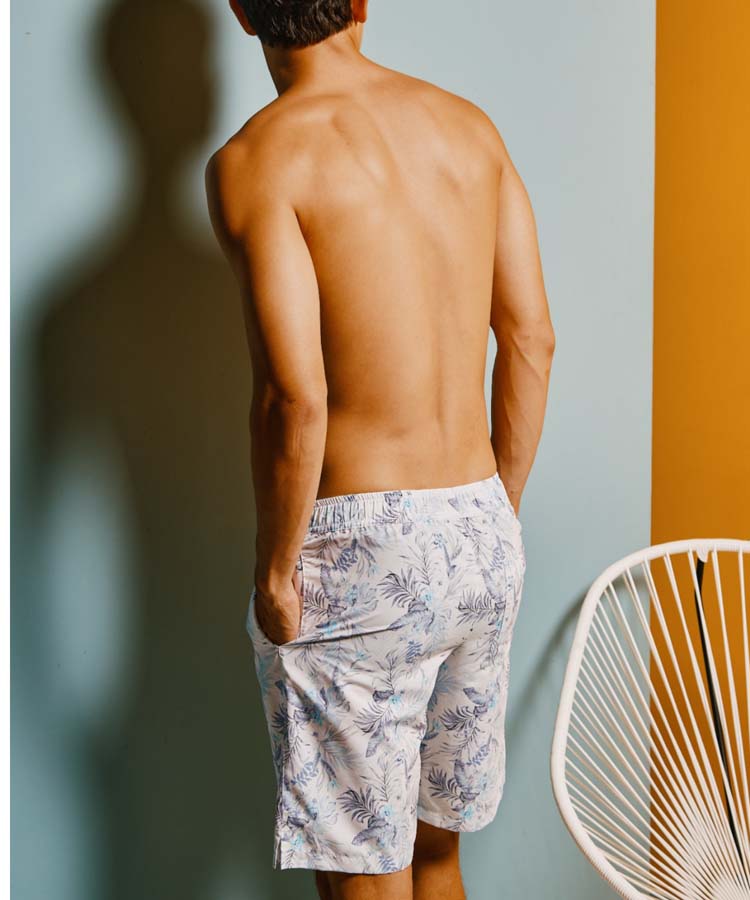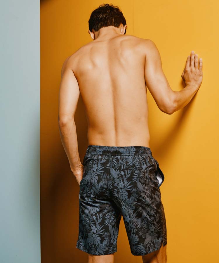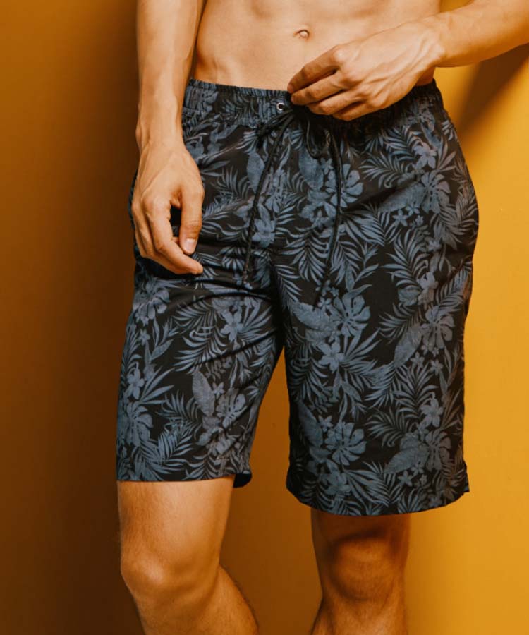 落ち着いたクールなリーフプリントがポイントのメンズ水着。