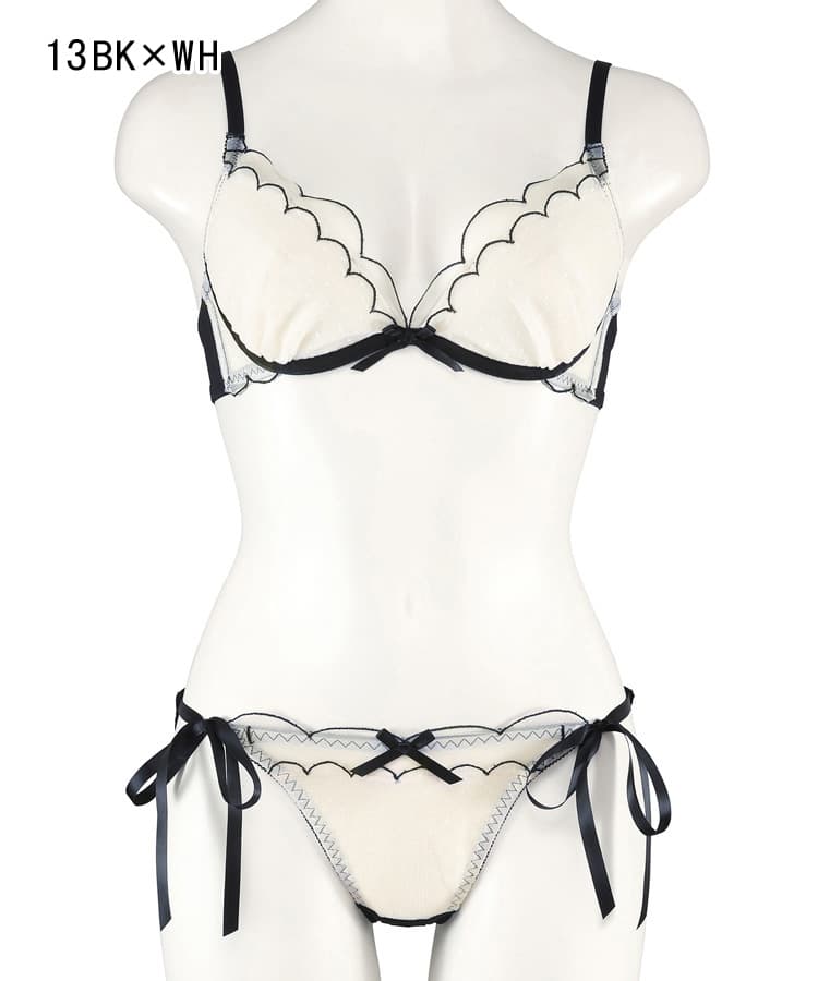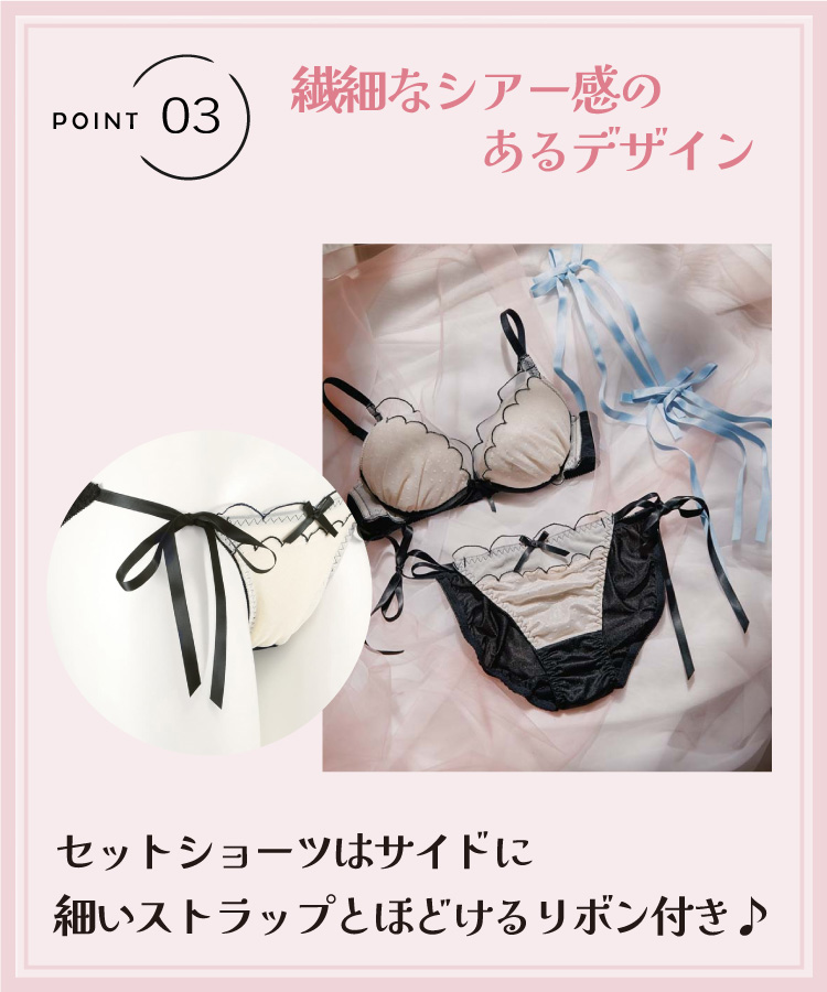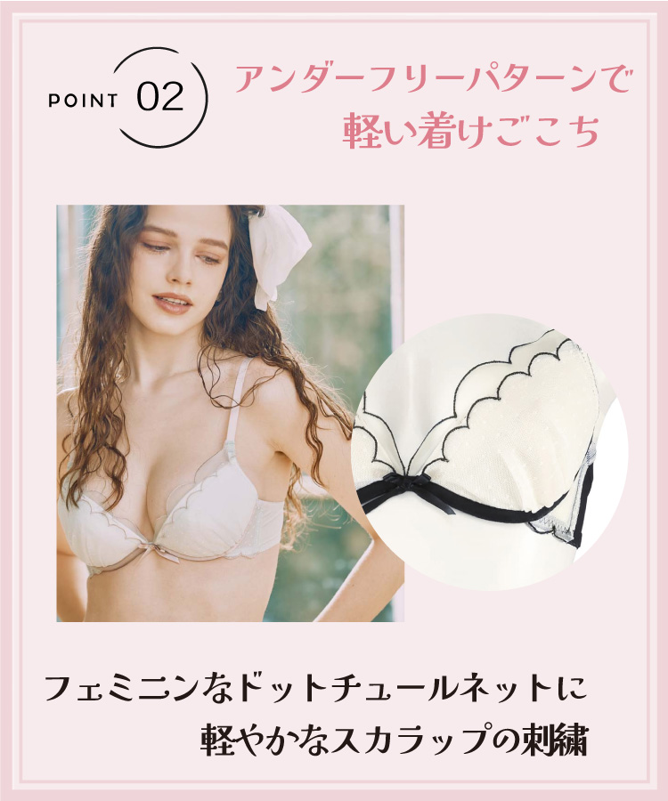 フェミニンなドットチュールネットに軽やかなスカラップの刺繍を施したとってもラブリーなアイテムです。