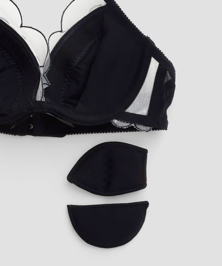 二つの取り外し可能パッドでバストをしっかり寄せて谷間をメイク!