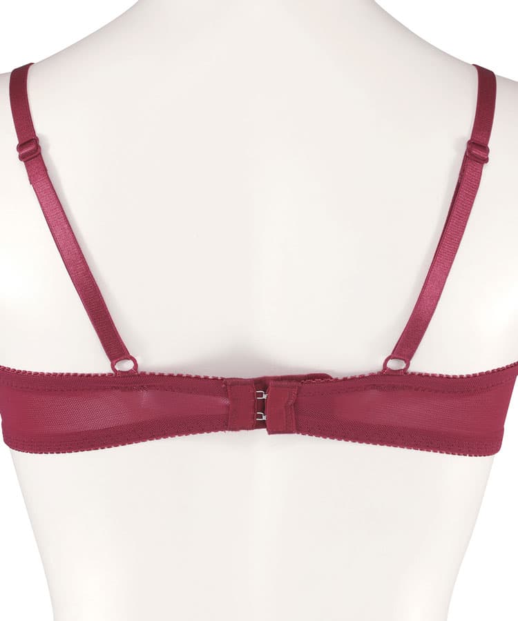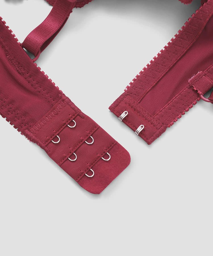光沢のある大きな花柄のストレッチレースがバストを包み華やかな印象に…