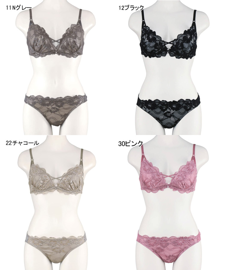 WEB限定【プチプラブラセット】純欲カラーヌーディーレーシーストリングブラ&ショーツセット