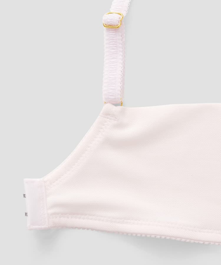 楽ちんフィットの特徴:毎日付けたくなる軽さと程よいフィット感。ストラップは縫い付けタイプなのでバストをしっかり支え安定感が有ります。