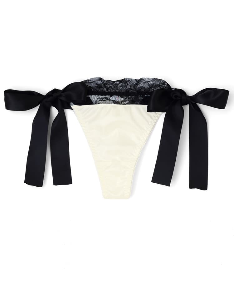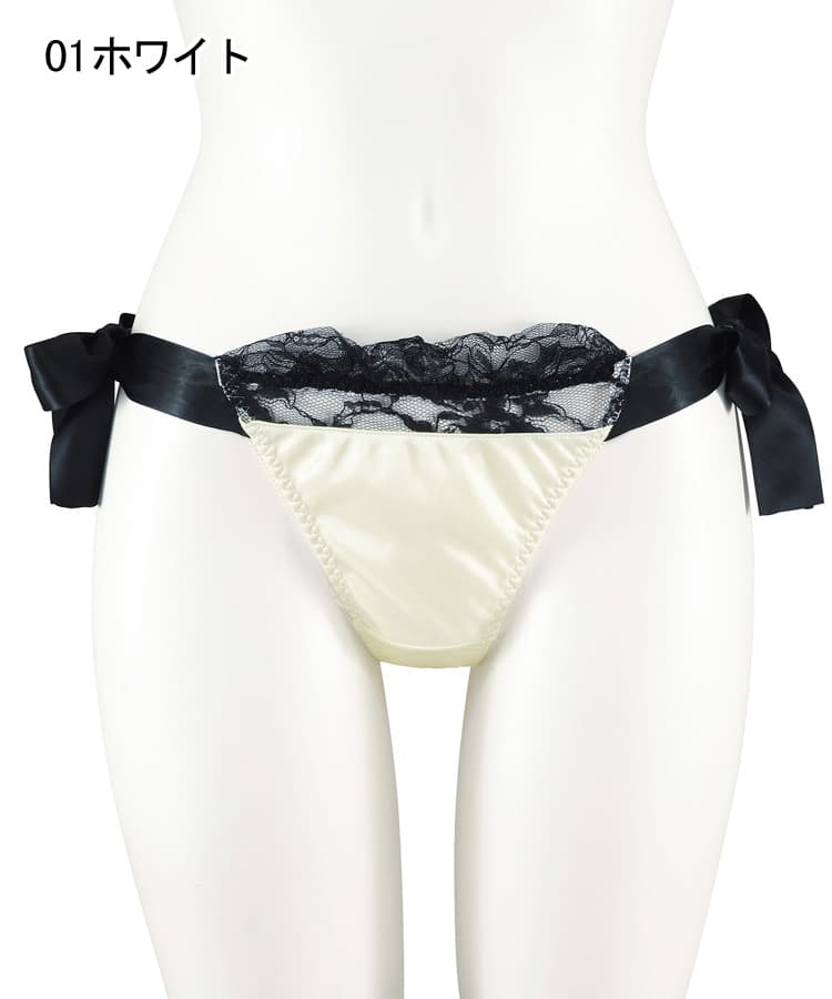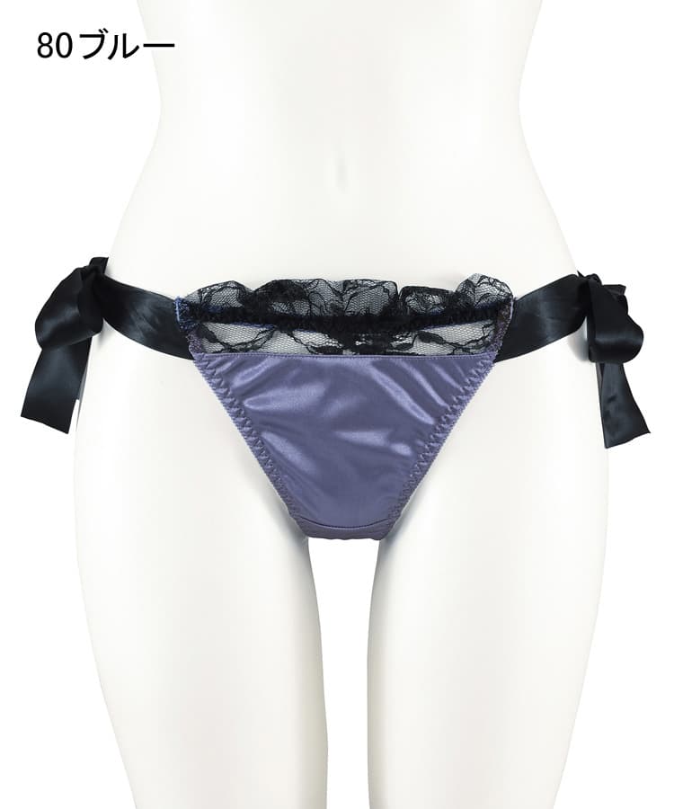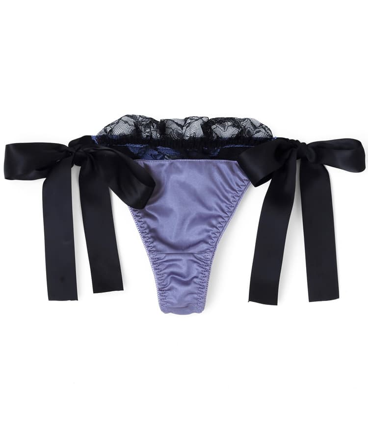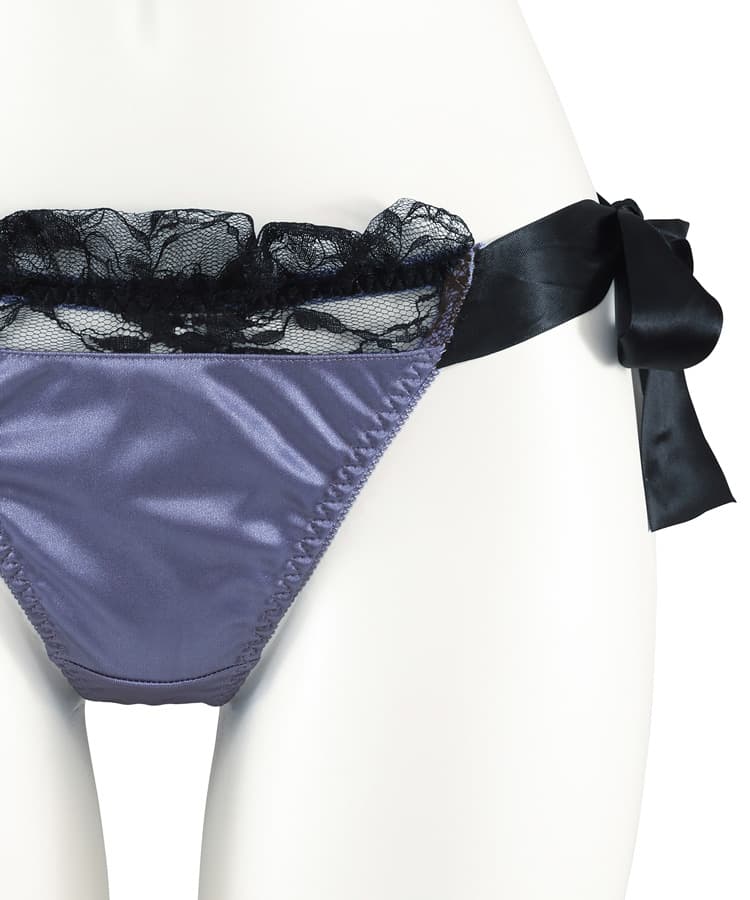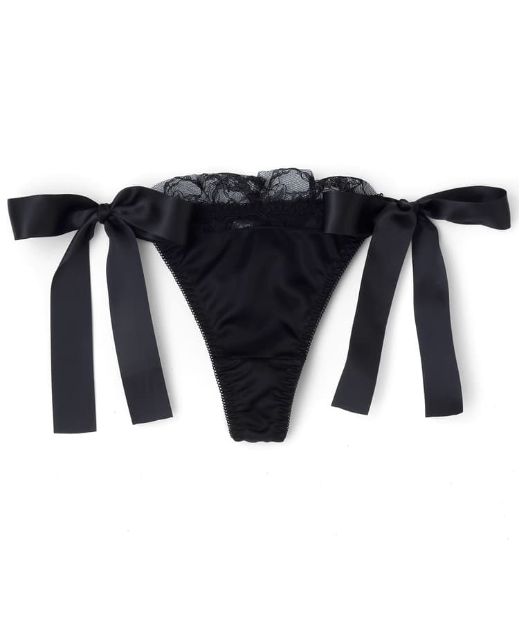 艶やかなサテンと、大きなリボンのデザインが魅力的なロマンティックなTバックショーツ。