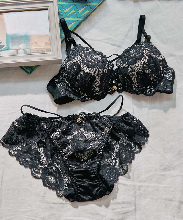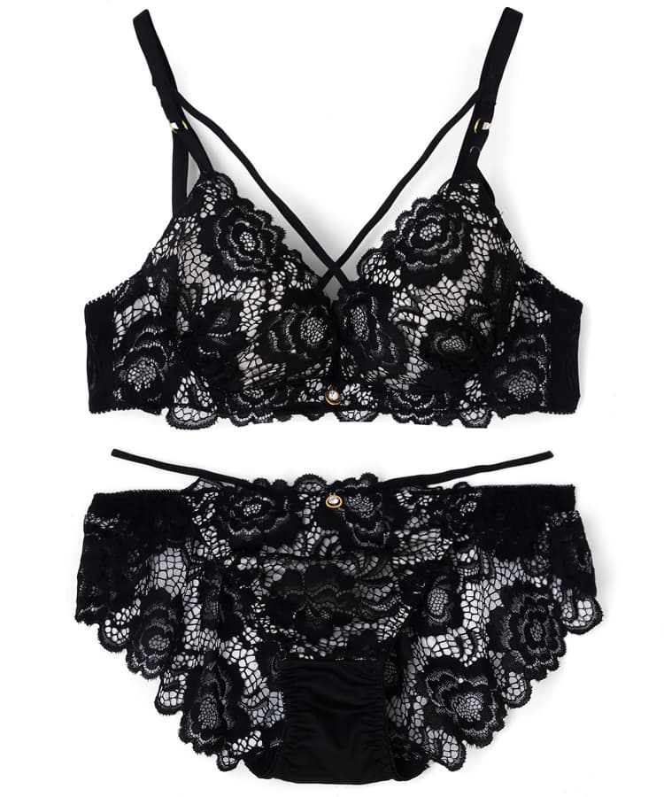 【プチプラブラセット】純欲レーシーBIGクロスブラジャー&ショーツセット