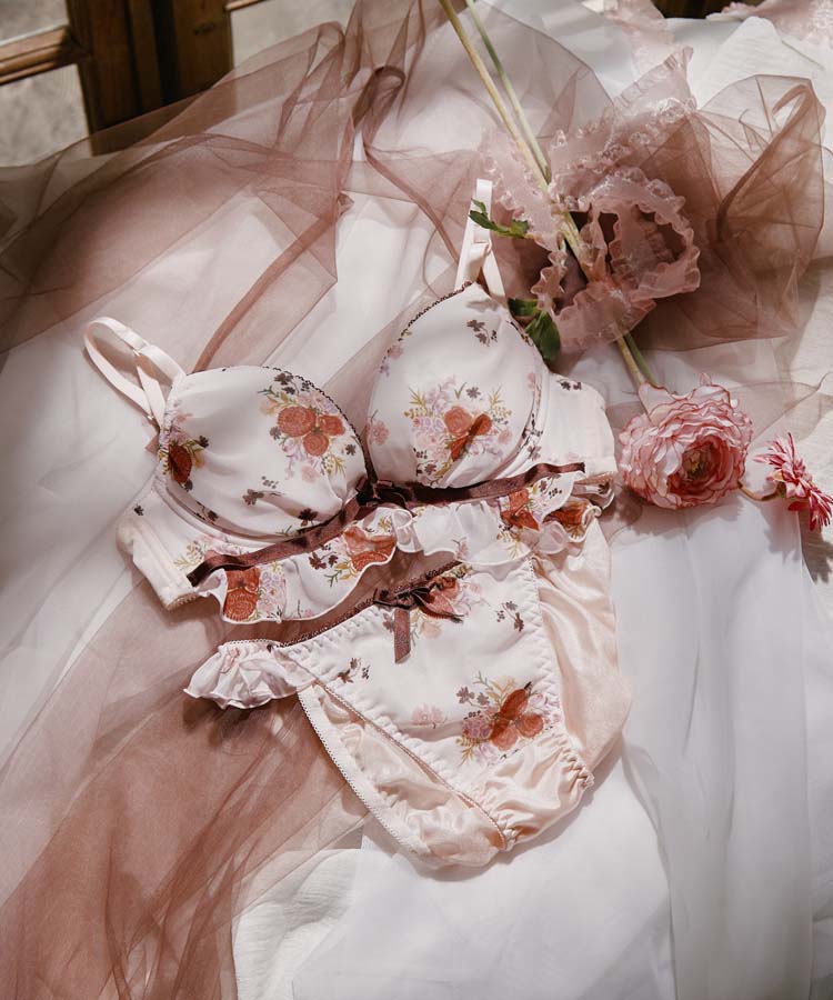 レトロフラワードレスブラジャー&ショーツセット