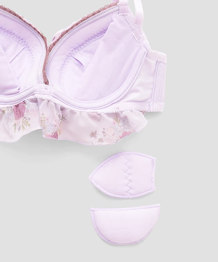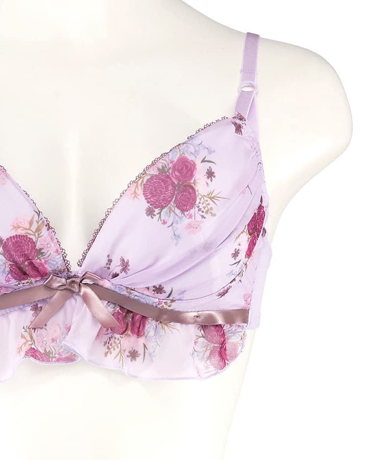 レトロなお花柄のプリント生地をたっぷり使ったガーリーなブラセット。