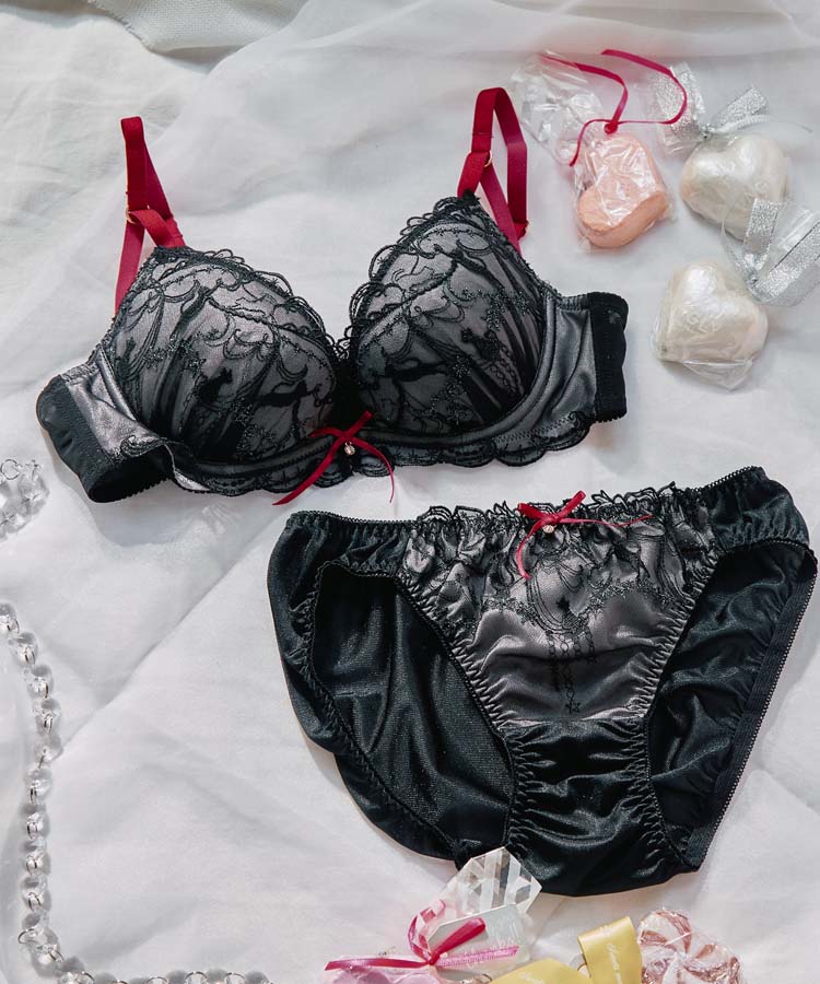 ドリーミーなレースの柄が乙女心をくすぐるブラセットです。