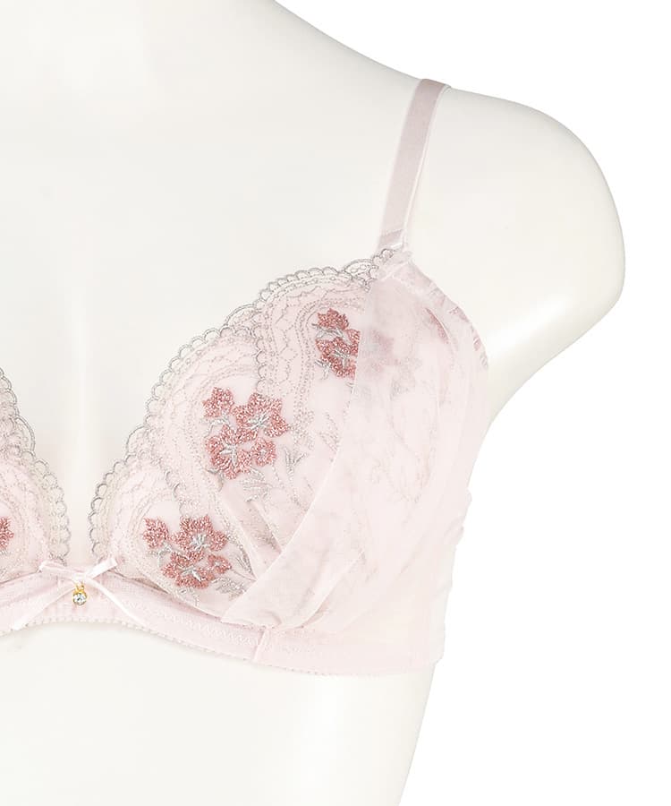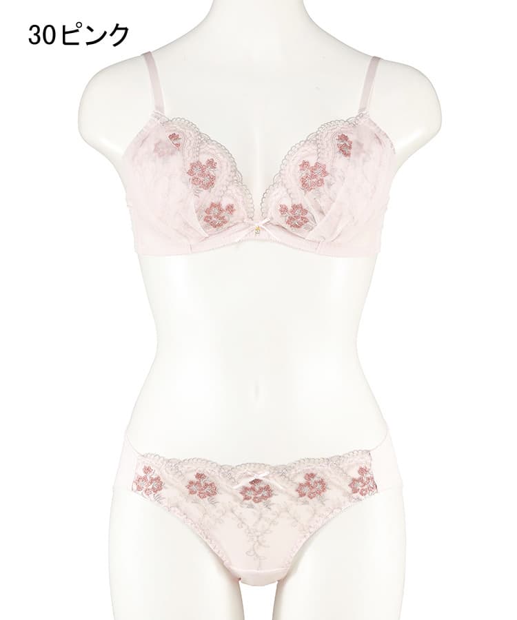 キラっと輝くラメ糸入りのチュールレースを使った、プチプラとは思えない高見えブラ&ショーツセット。