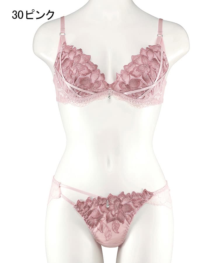 セットショーツはバックレースタイプでフロントのコードから肌見せ