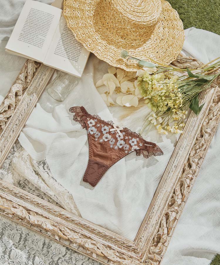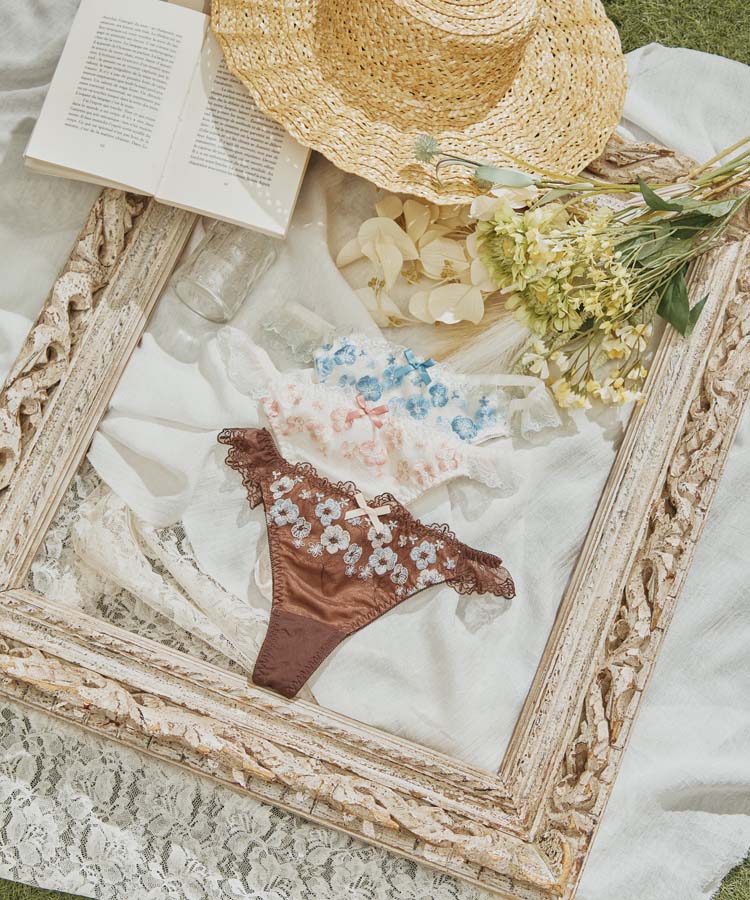 【northerly bra フィットシリーズ 楽盛りフィット】 楽盛り刺繍 楽盛りフラワーブルーム Tバックショーツ単品 M/L