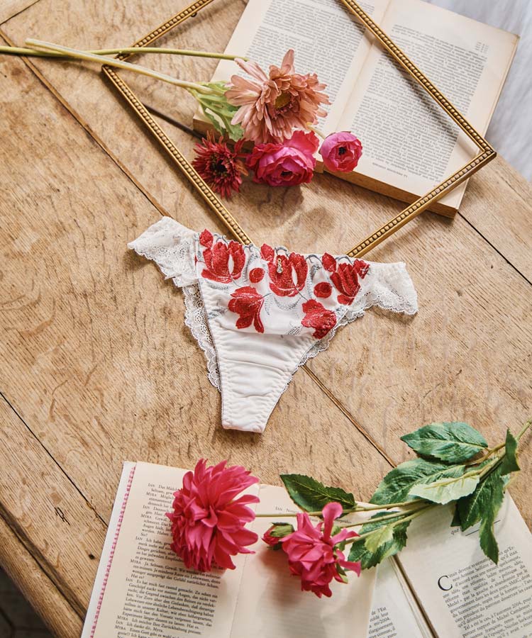 動きのある大胆な花柄のレースで、女性らしい柔らかさと優雅さを演出。