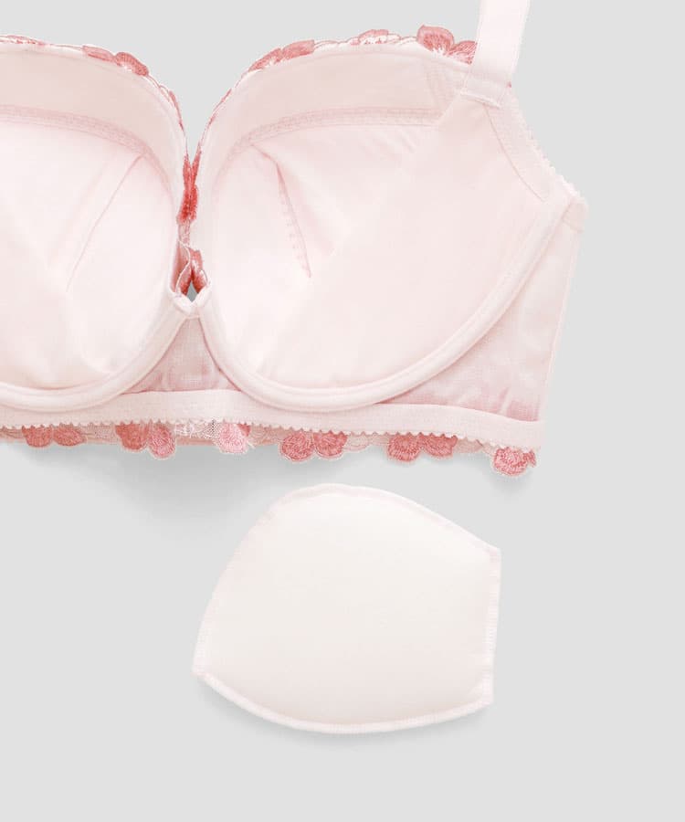 カップ全体に咲き誇る、インポートライクな大胆な花柄をレースで表現しました。