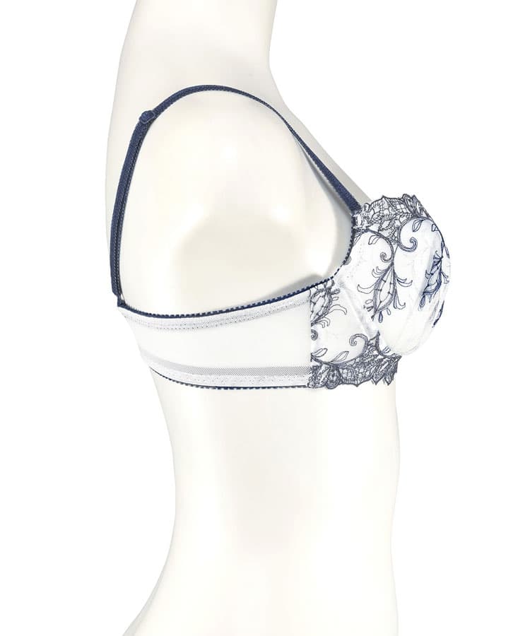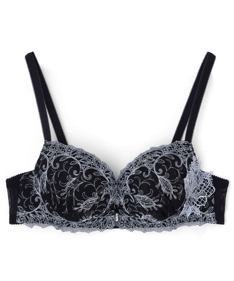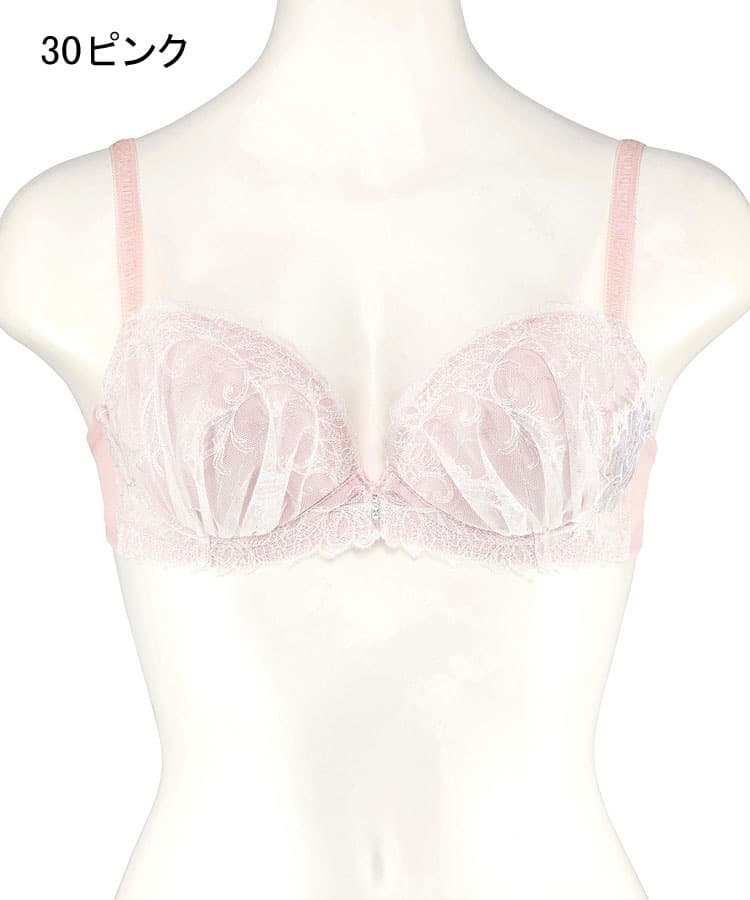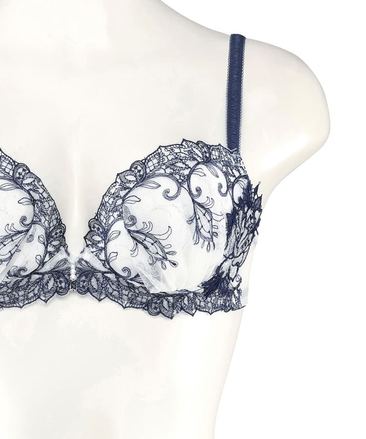 妖艶な孔雀の羽をモチーフにした、ラメラインが繊細に彩るレースが特徴的なブラジャーです。