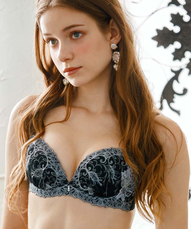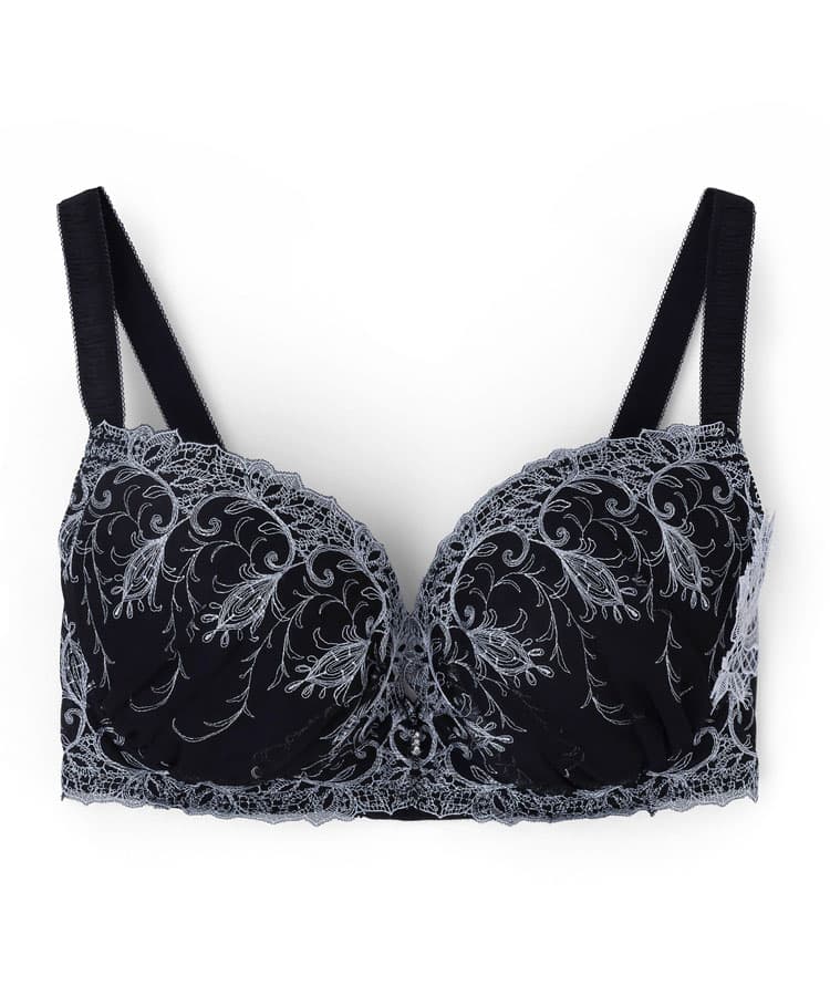 妖艶な孔雀の羽をモチーフにした、ラメラインが繊細に彩るレースが特徴的なブラジャーです。
