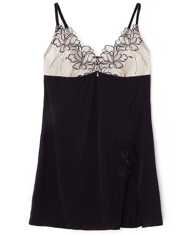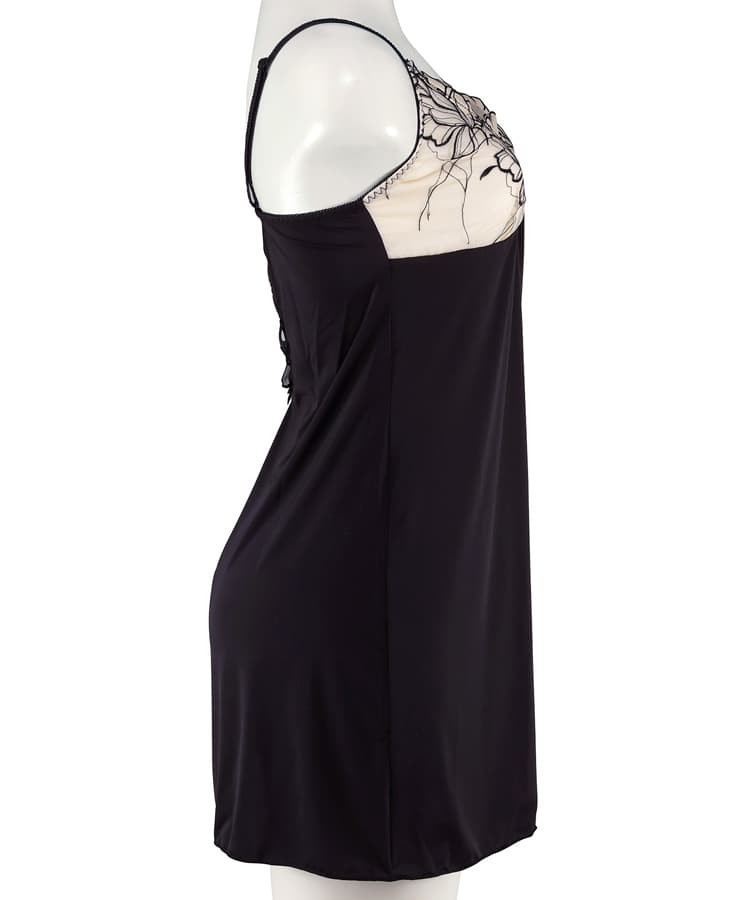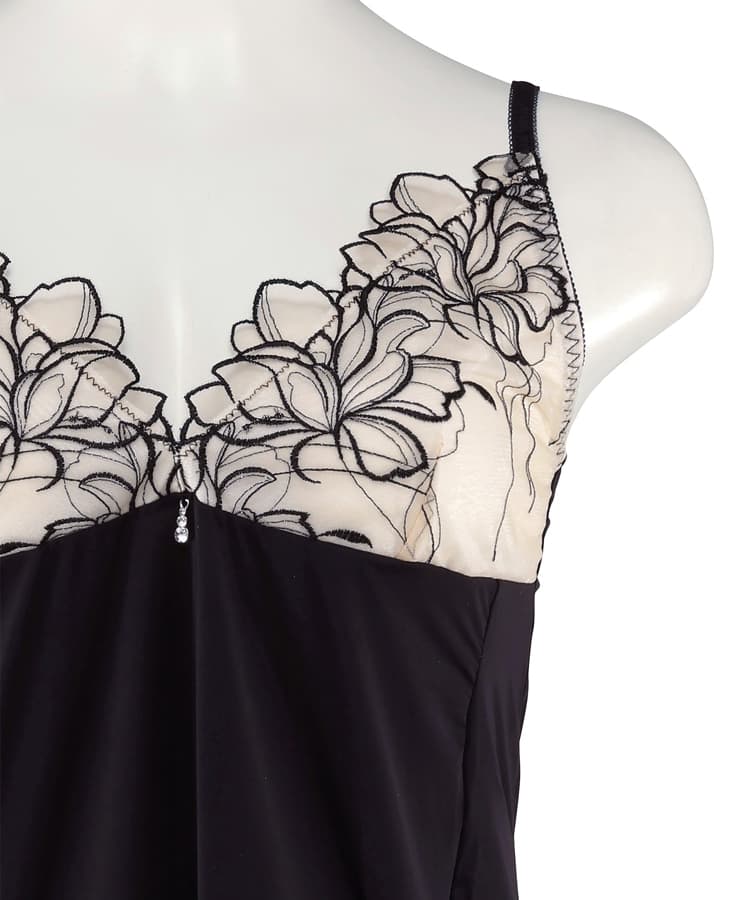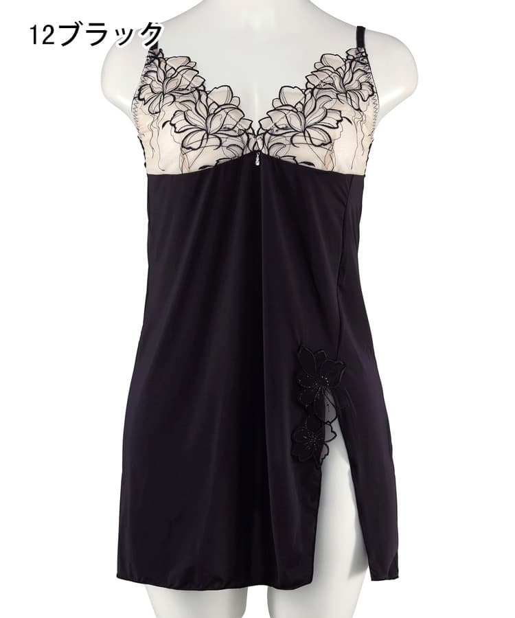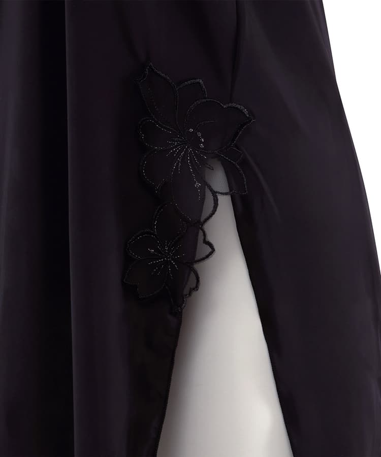 サイドのスリットにはアップリケレースを添えて妖艶さを演出。