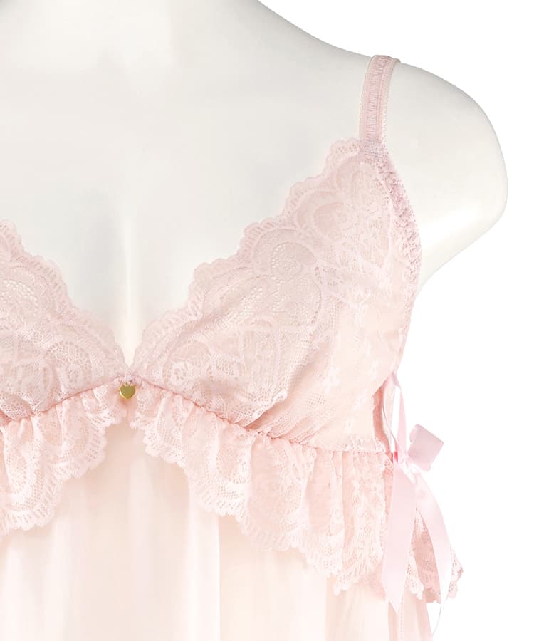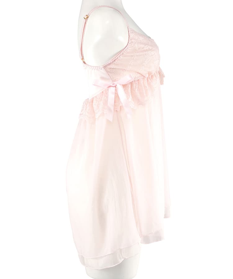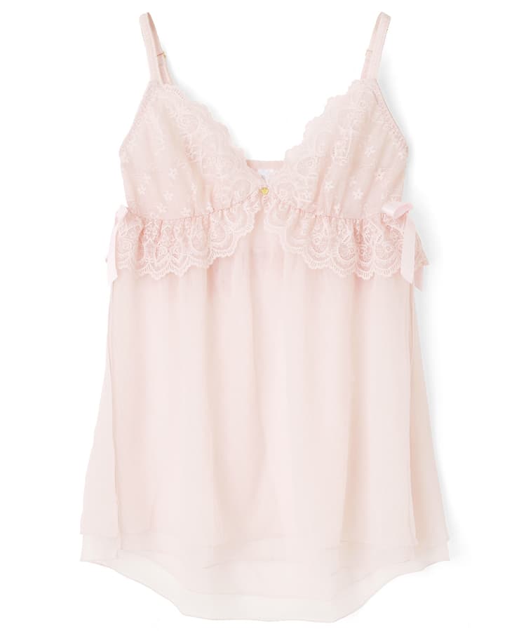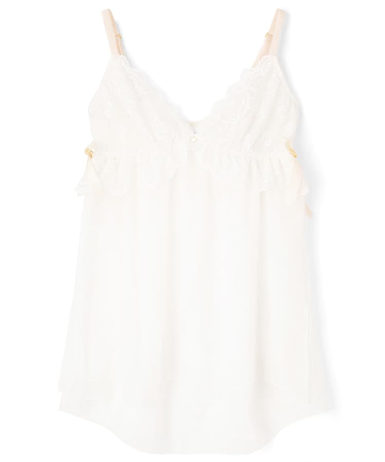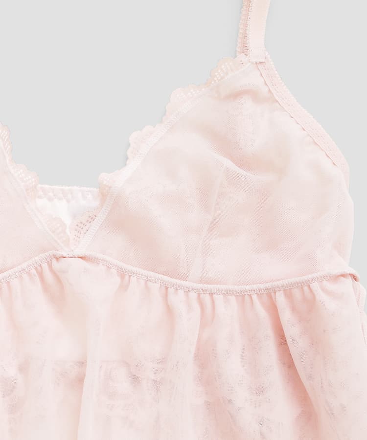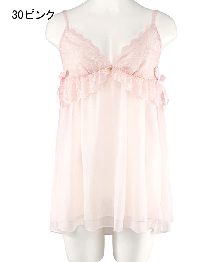 ふんわり透け感のある2枚仕立てのチュール身頃、バスト部分はブラと同じデザイン。