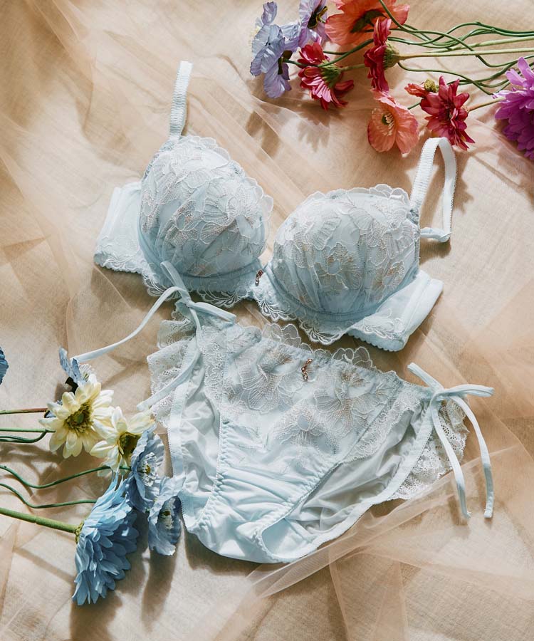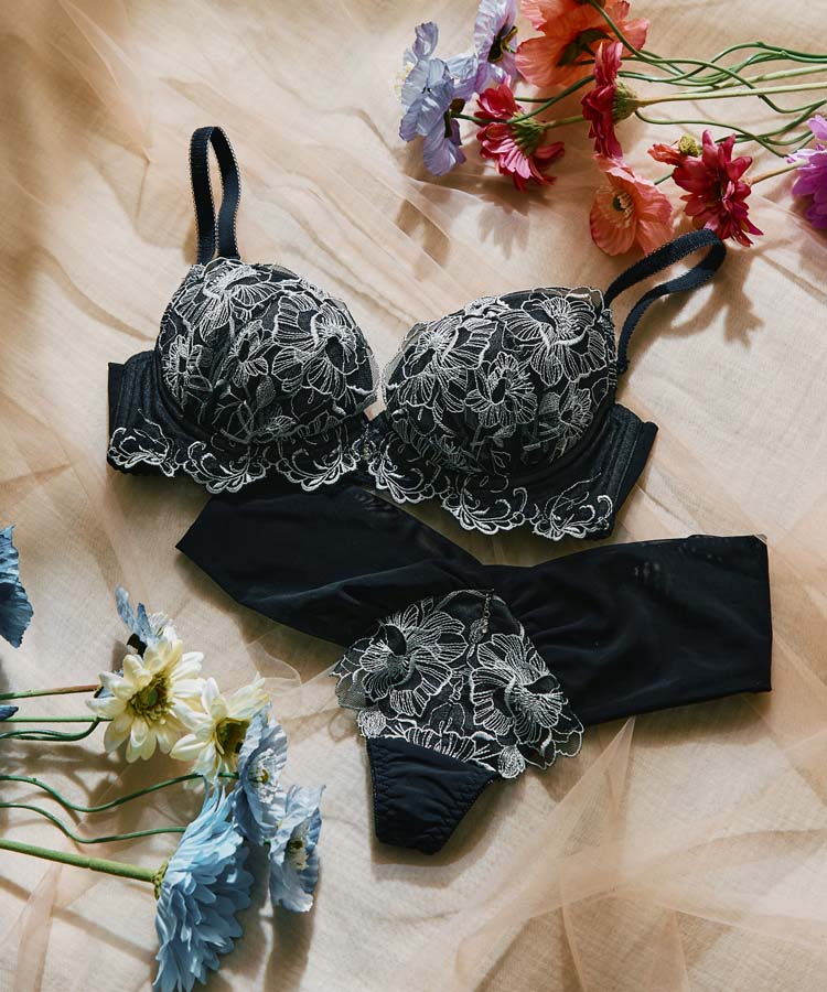 大きな花柄のレースが大人の色気を漂わせ、可憐さの中にも凛とした美しさを感じさせるシリーズです。