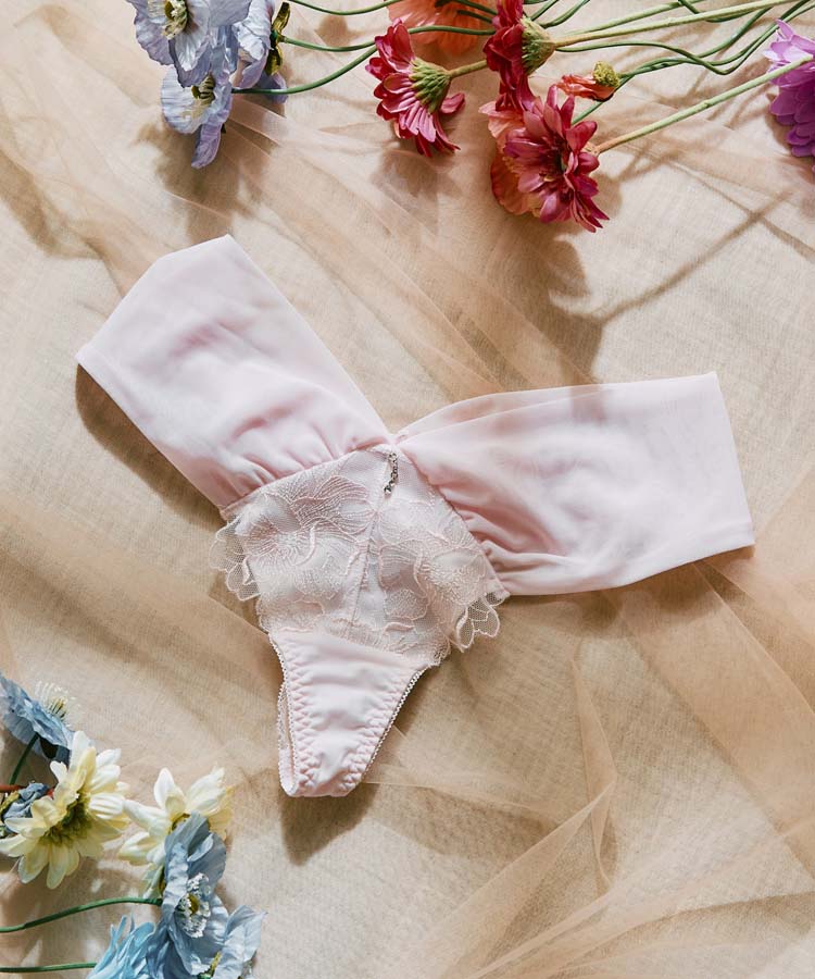 ギャザーを寄せた伸びのあるチュールネット生地で全体を優しく包むTショーツ。