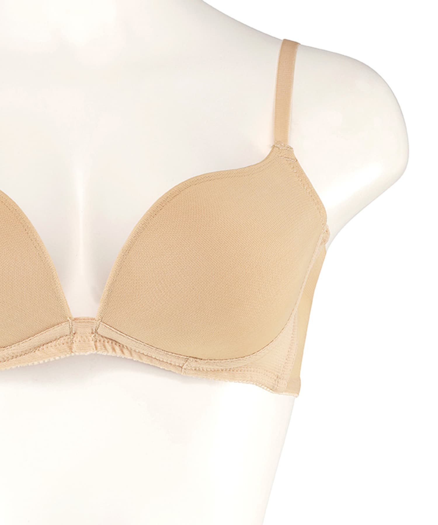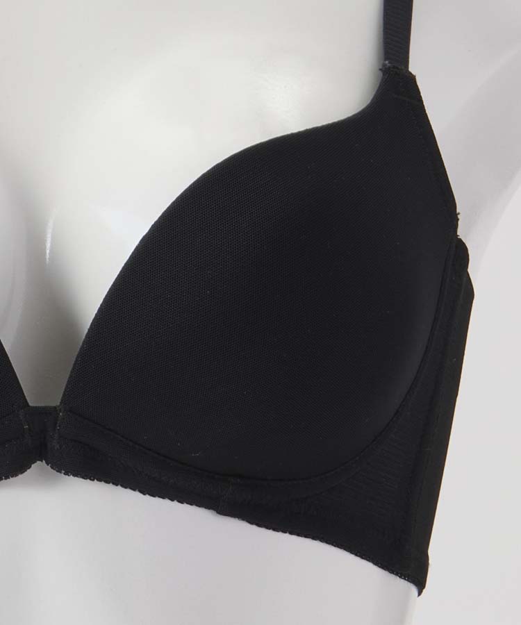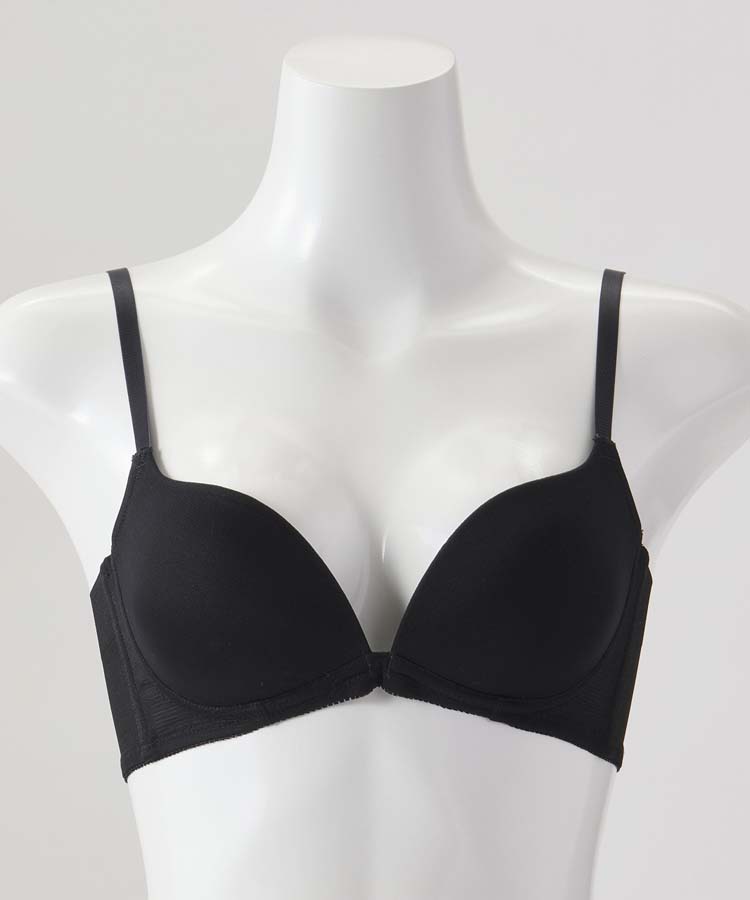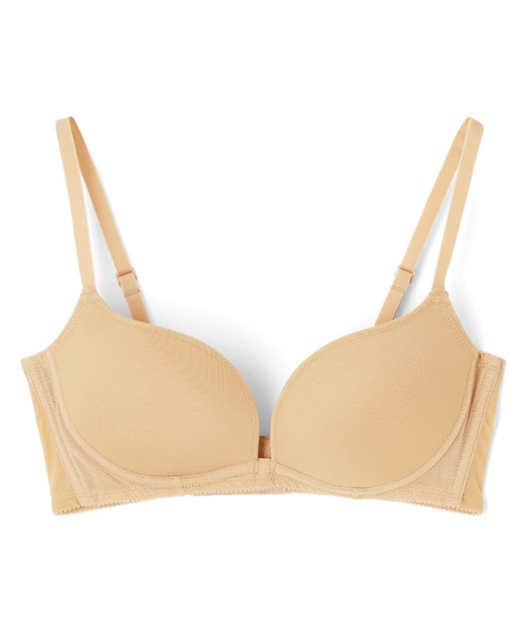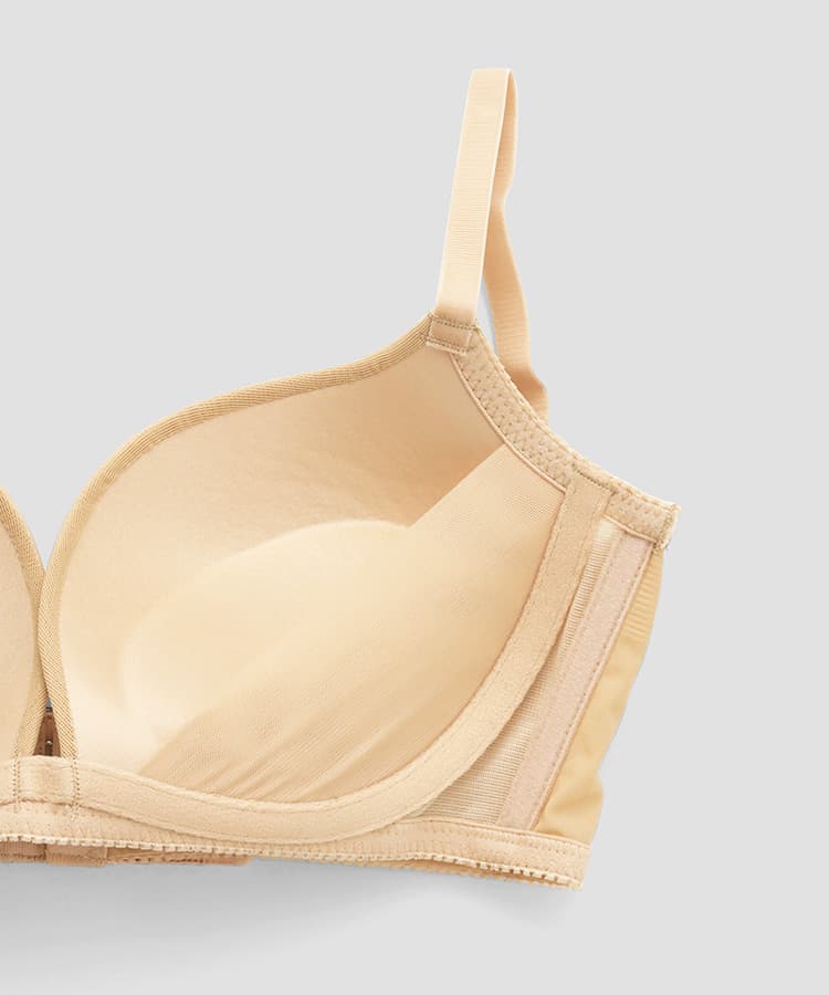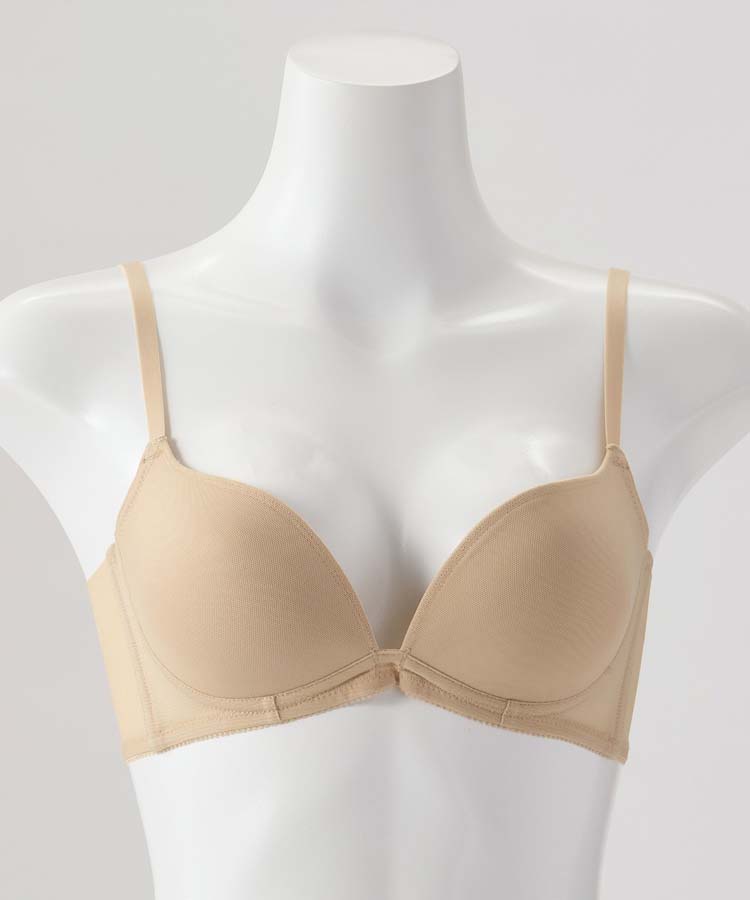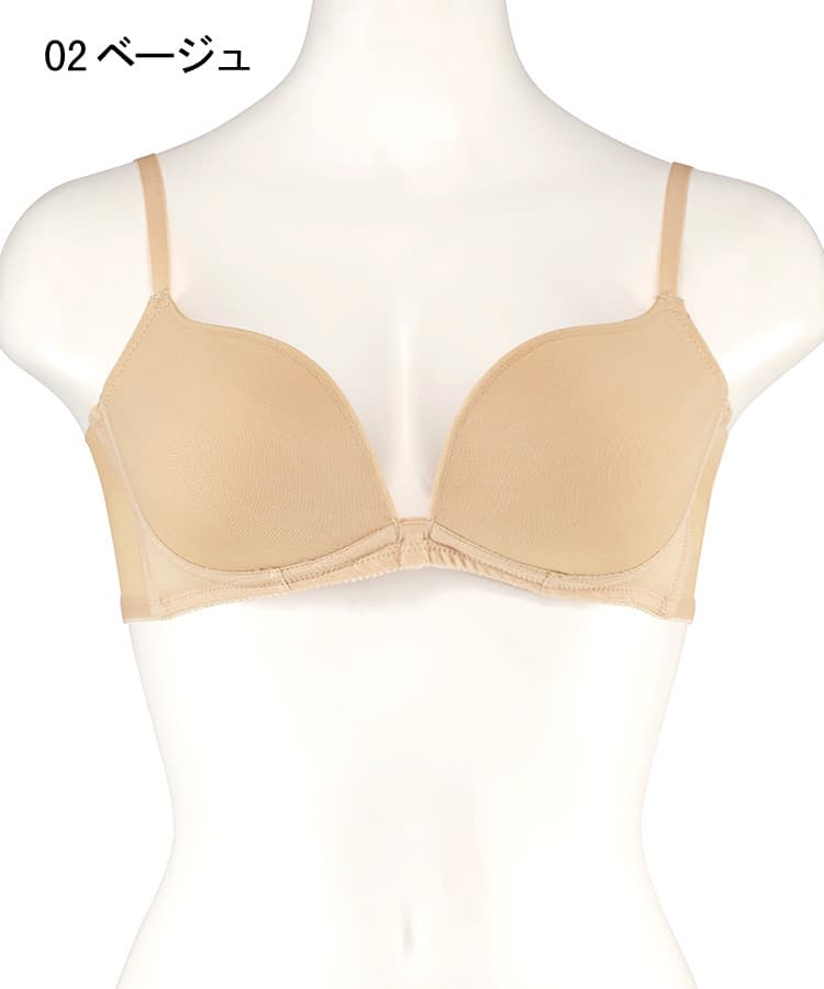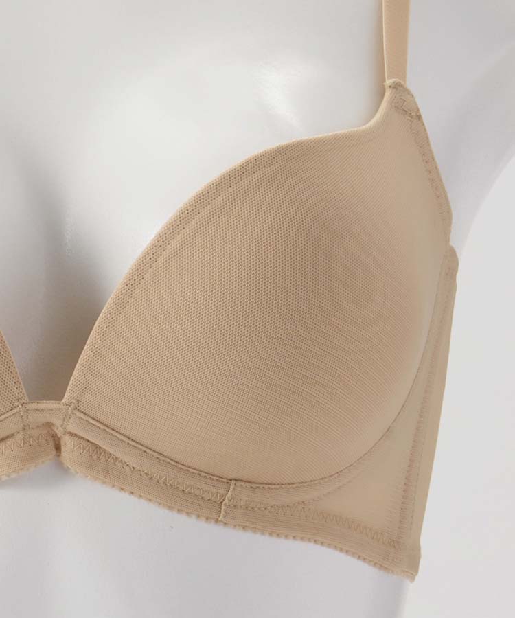 柔らかい肌触りとノンワイヤーが特徴でL字型にカップを設計しているので、胸が自然に寄って谷間ができやすい商品となっております。