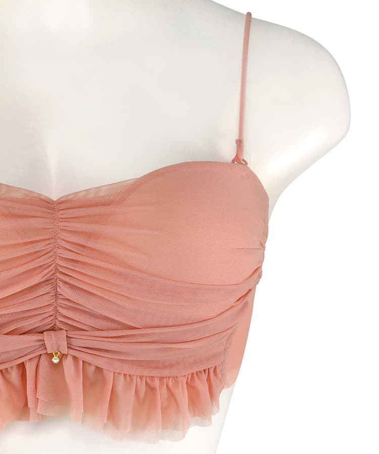 アンダー部分には存在感のある大きなリボンをあしらい、その下に重ねた2段フリルが、より一層フェミニンで可愛らしい印象に。