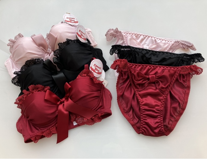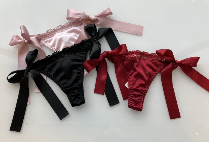 お揃いのT -backにはサイドに大きなサテンのリボンがついており