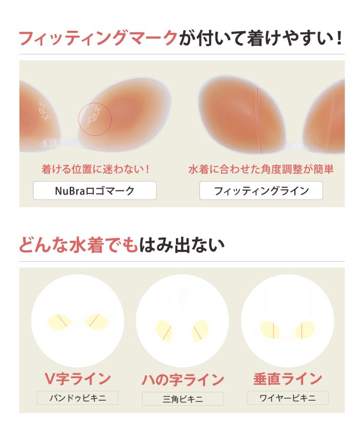 トレンドの水着から三角ビキニまで、どんな水着でも対応可能な「ヌーブラ・ビーチ プラスⅡ フィット」は、プチバストの方から本物の胸のようなリアルな質感をお求めの方まで、幅広いニーズに対応できるアイテムです。