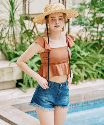 足ぐりのフリルがデザインポイント
