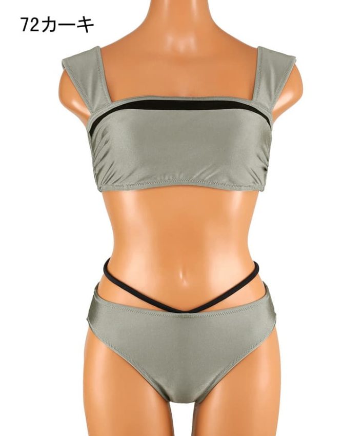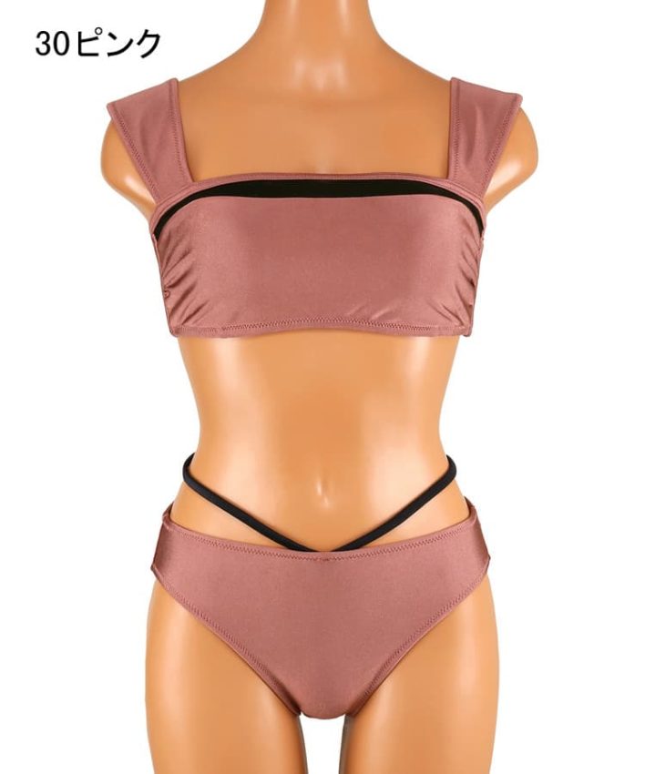 肌触りが柔らかいブライト素材を使用したモード感のあるバンドゥビキニ。