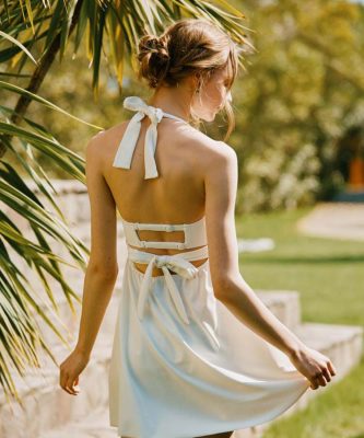 クールで女性らしい雰囲気のAラインワンピースセット。
