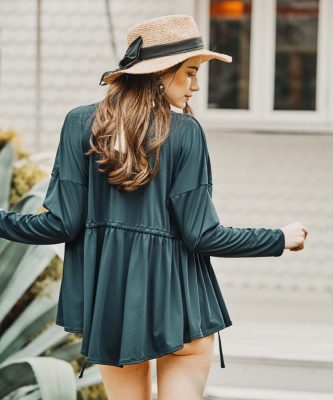 キュッとギャザーを寄せてウエストマークして着るのもおすすめです。