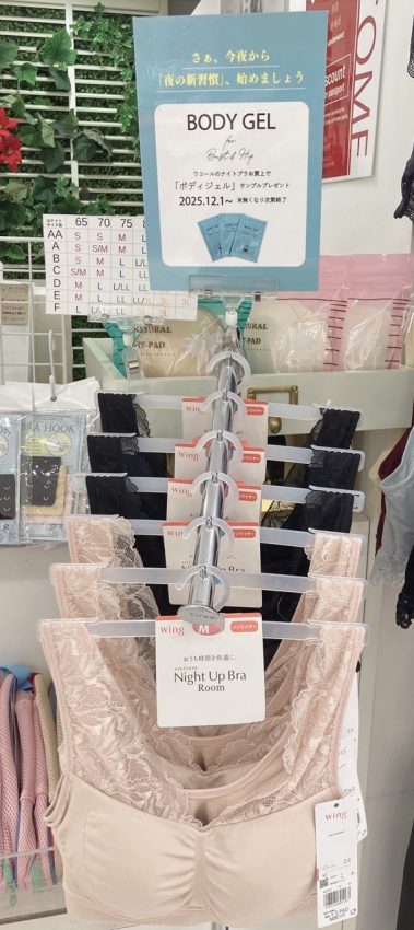 【San-aiResort northerly西銀座】ワコールナイトブラお買い上げで「ボディジェル」サンプルプレゼント!