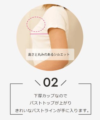 また下厚カップなのでバストトップが上がりきれいなバストラインが手に入ります。