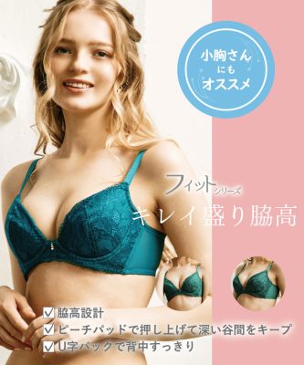 中心が低いのできれいな谷間メイクをしてくれるキレイ盛りブラです。