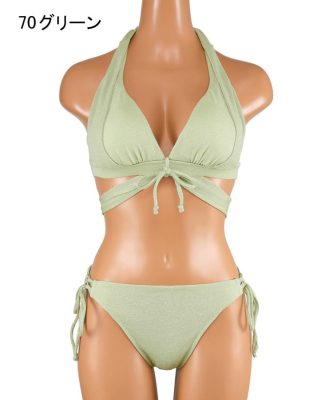 アウターライクなラメ素材を使用したナチュラルアップビキニ。